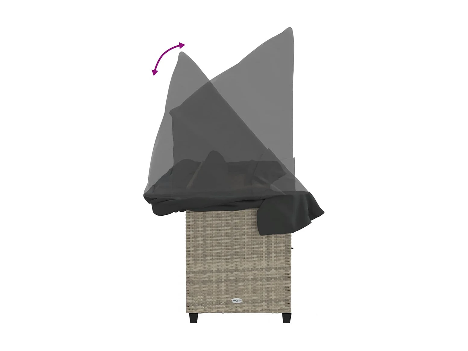 Chaise longue avec auvent et coussins gris clair résine tressée