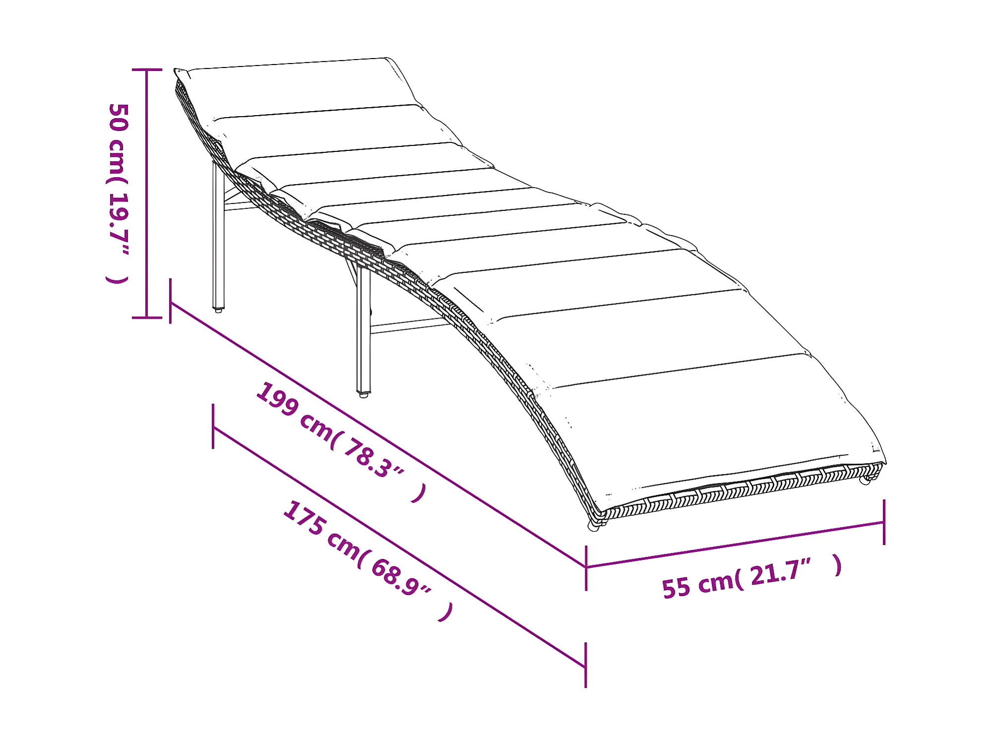 Bain de soleil avec coussin beige 55x199x50 cm résine tressée FR66876