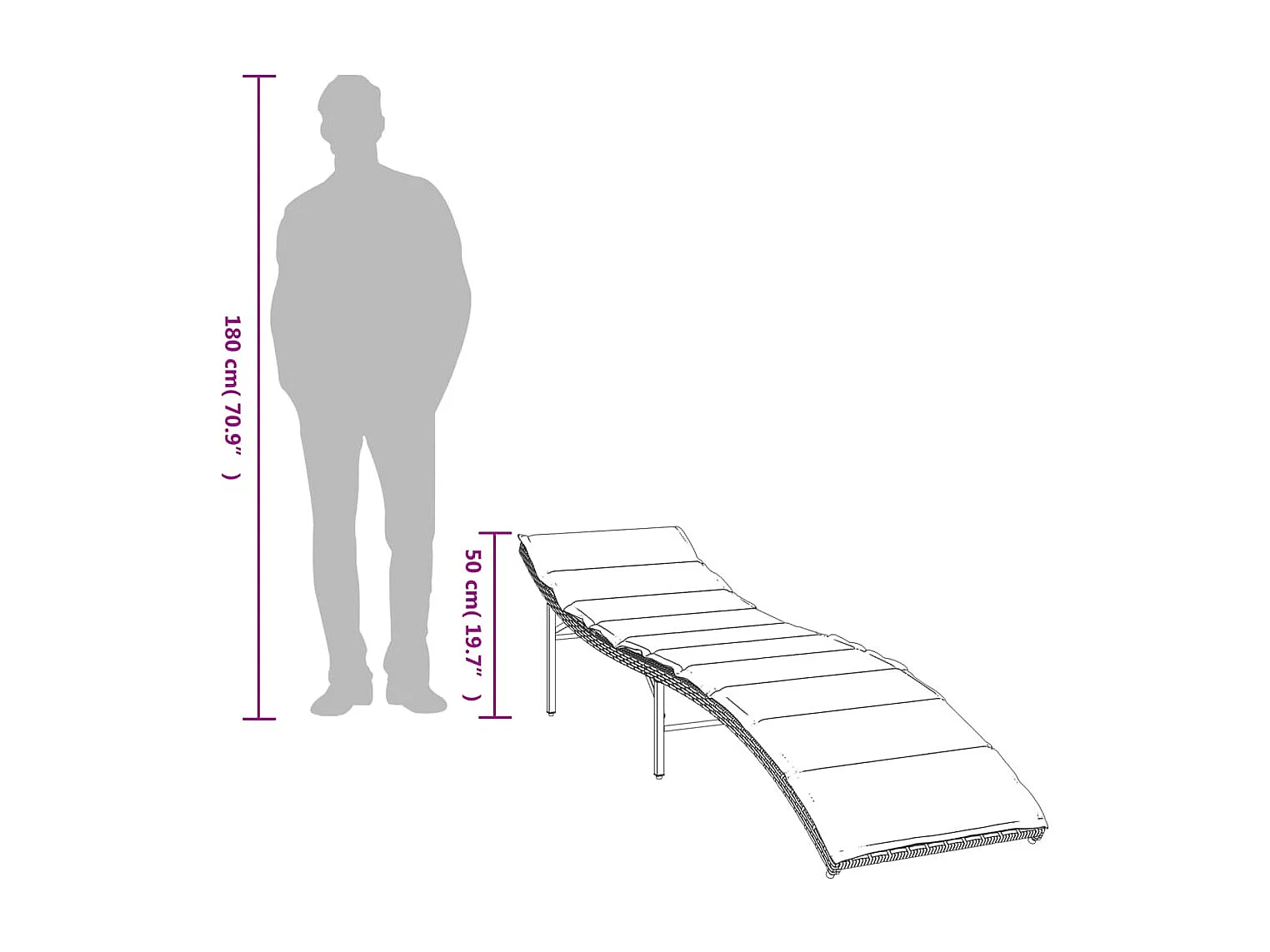 Bain de soleil avec coussin beige 55x199x50 cm résine tressée FR66876