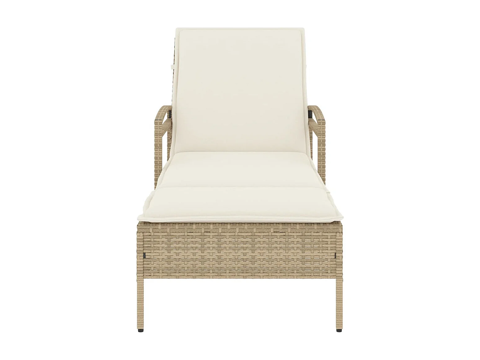 Chaise longue avec coussin beige 63x200x81 résine tressée