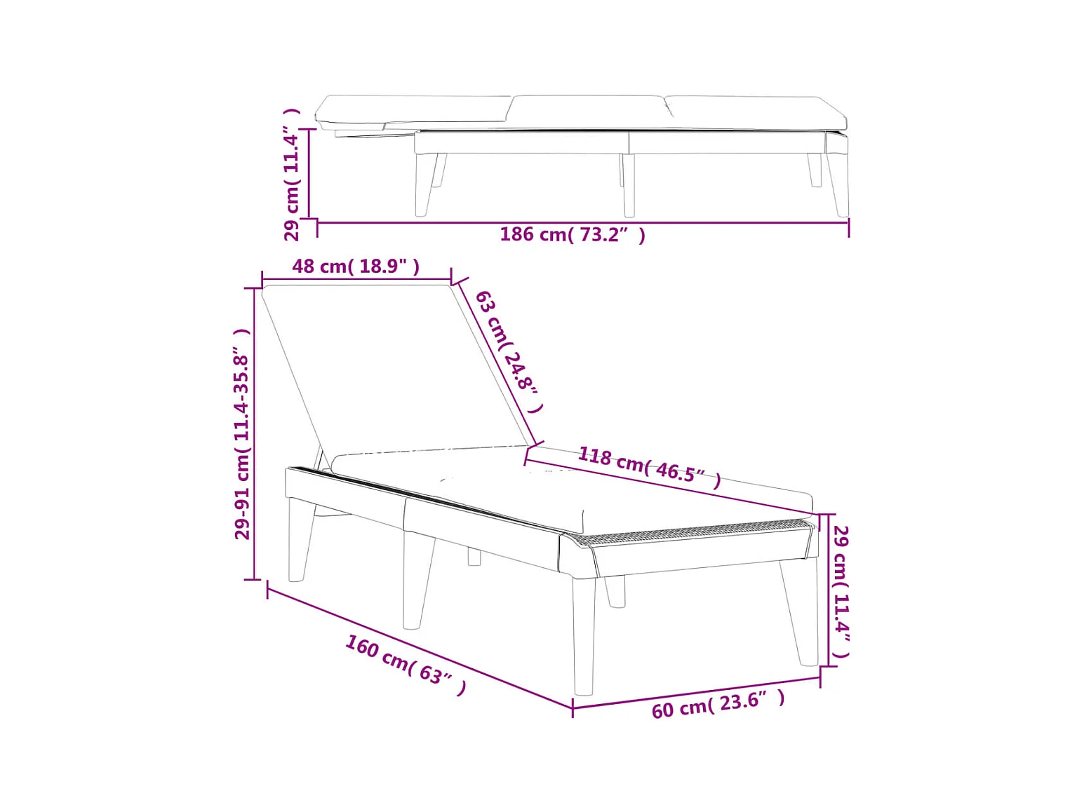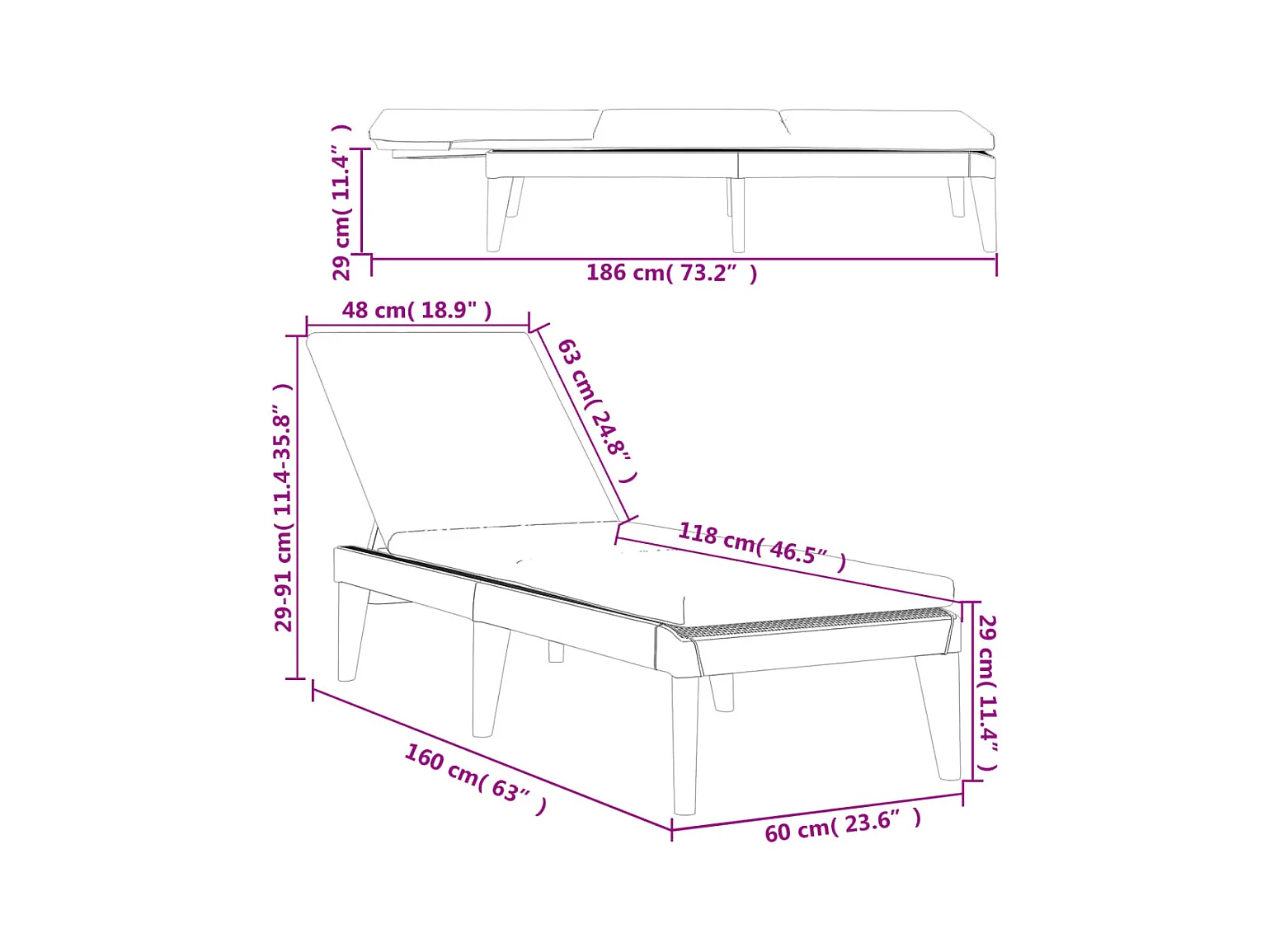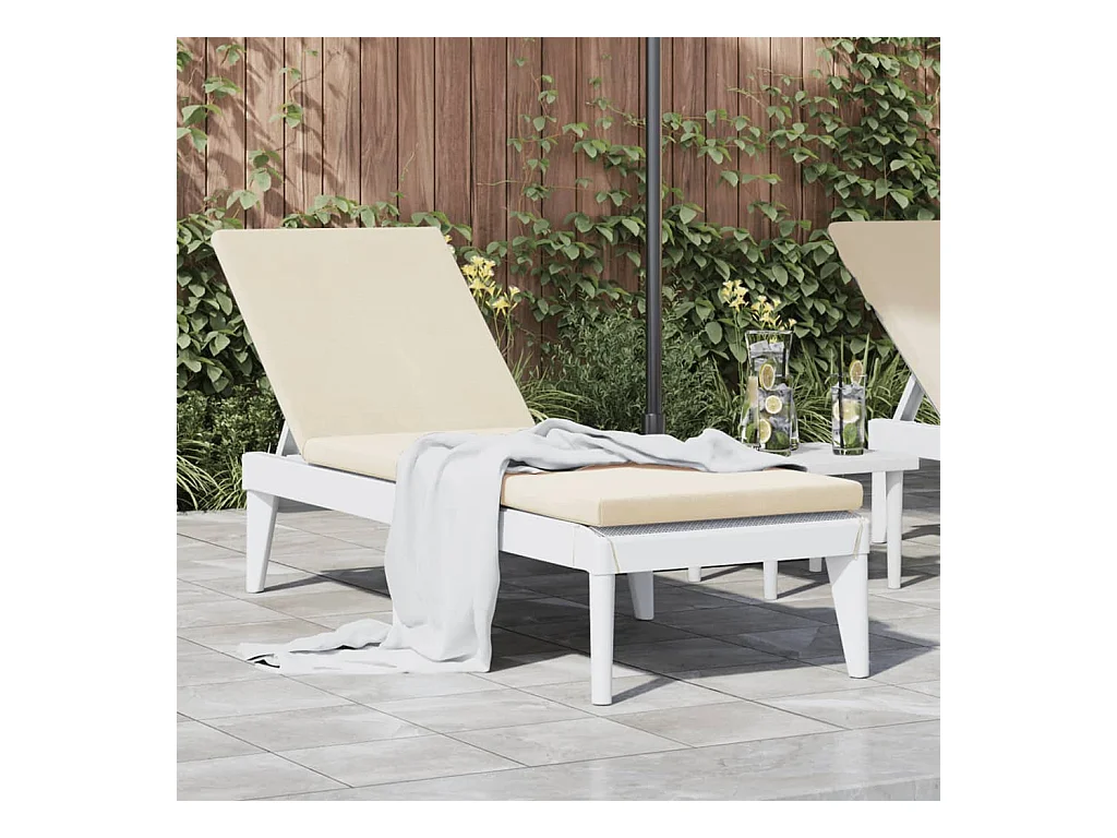 Chaise longue avec coussin blanc 186x60x29 cm PP