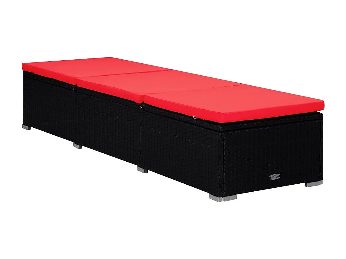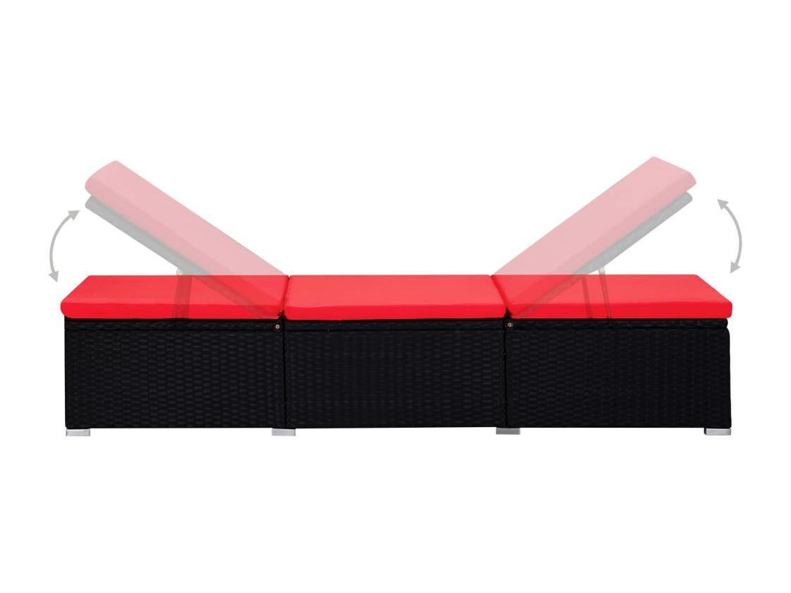 Chaise longue avec coussin et table à thé Résine tressée Rouge