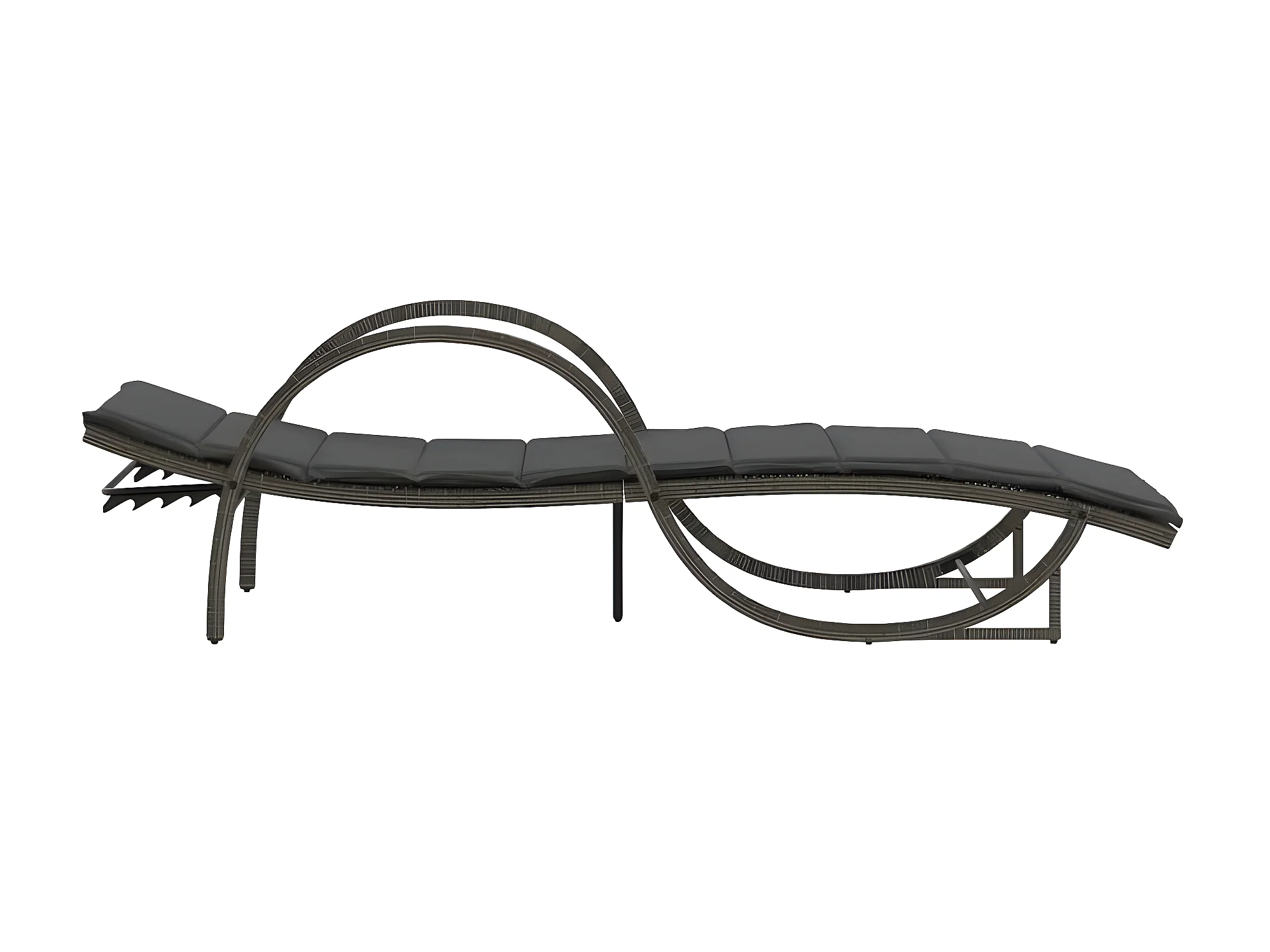 Chaise longue avec coussin gris 60x199x42 résine tressée