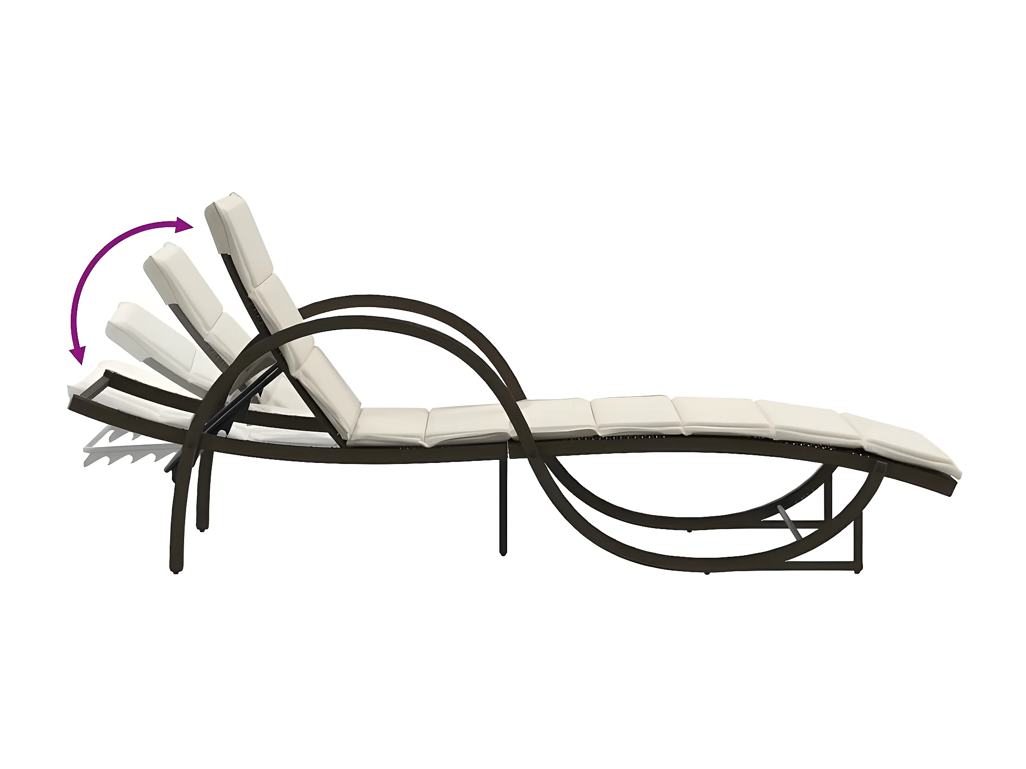Chaise longue avec coussin marron 60x199x42 résine tressée