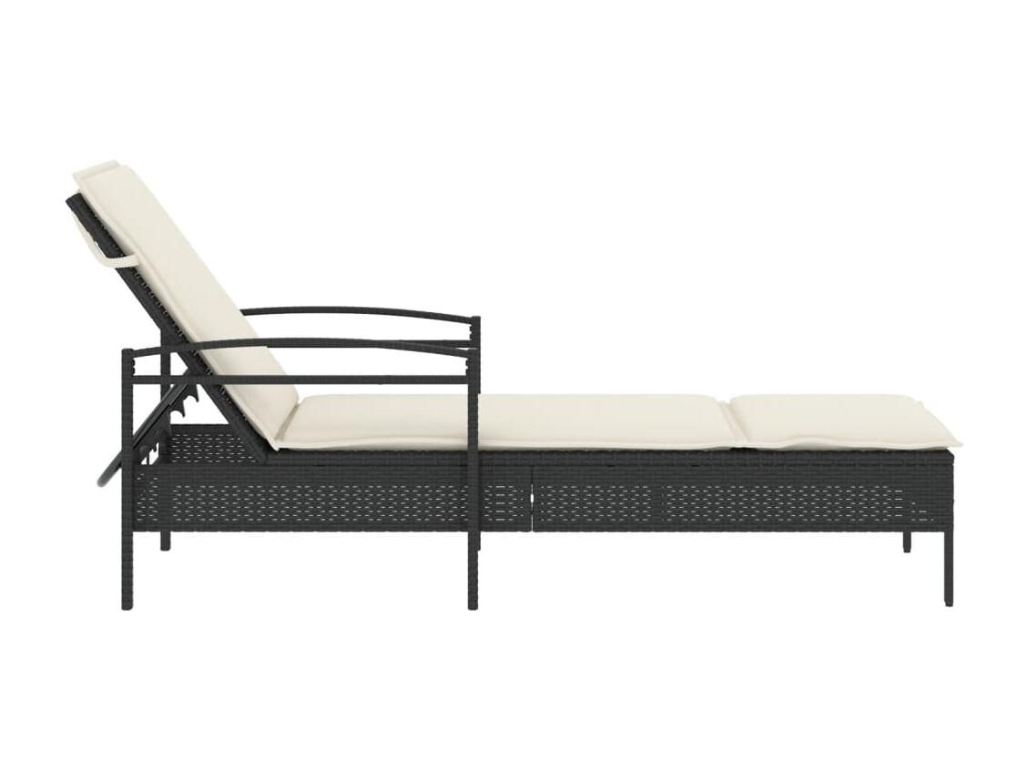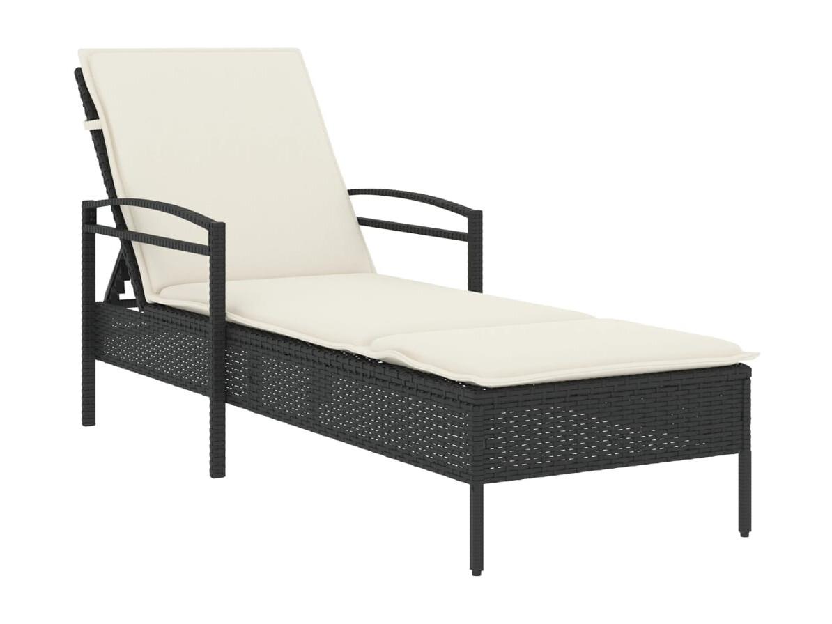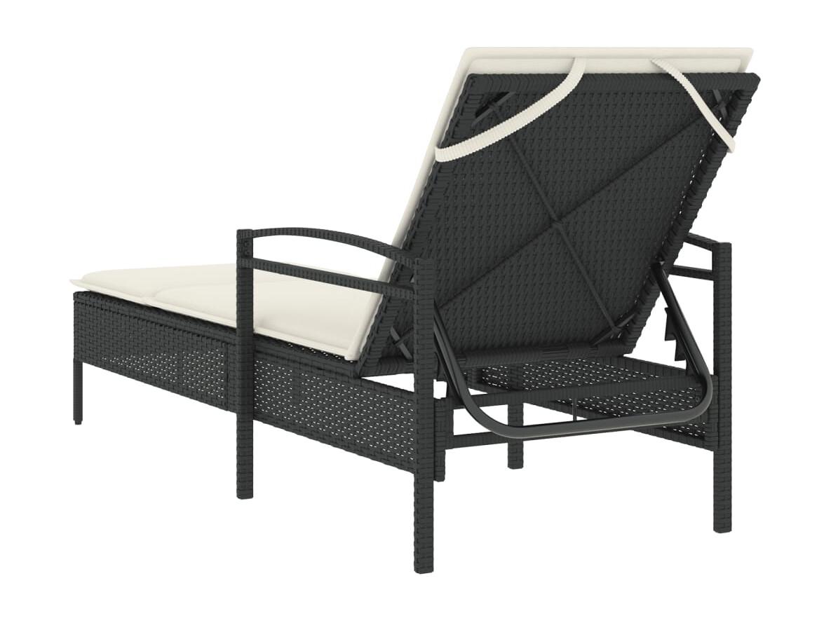 Chaise longue avec coussin noir 63x200x81 résine tressée