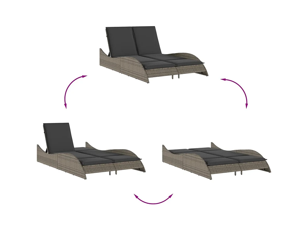 Chaise longue avec coussins gris 114x205x73 résine tressée