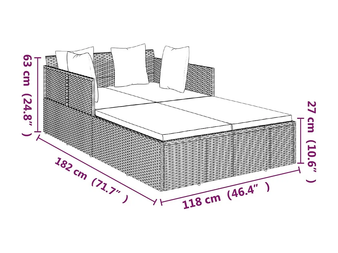 Chaise longue avec coussins marron 182x118x63 résine tressée