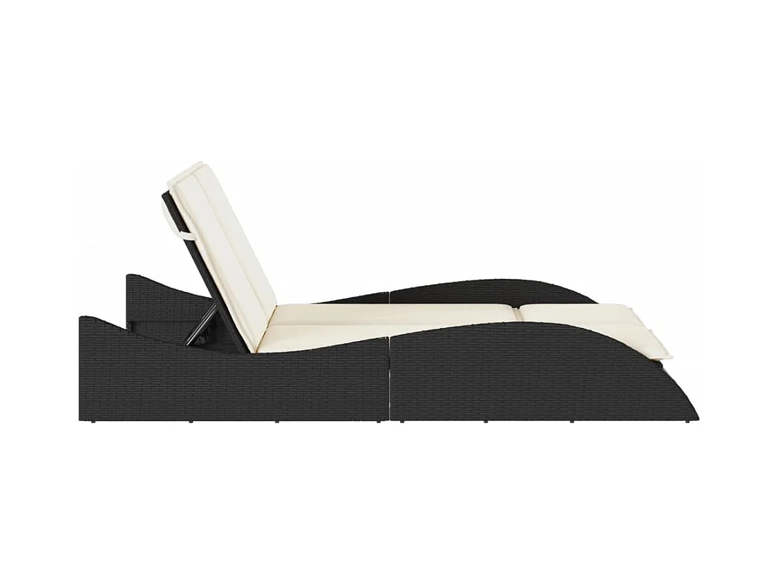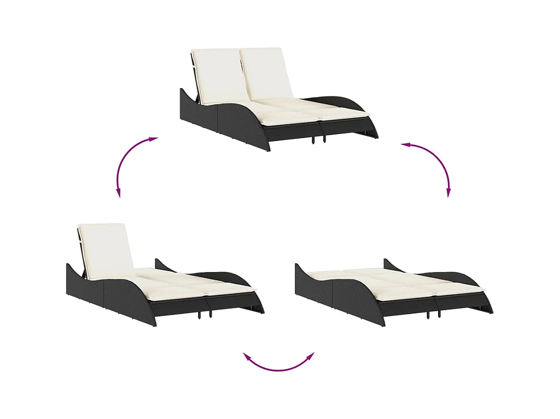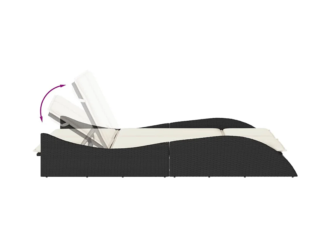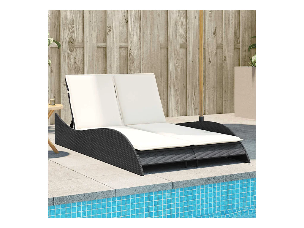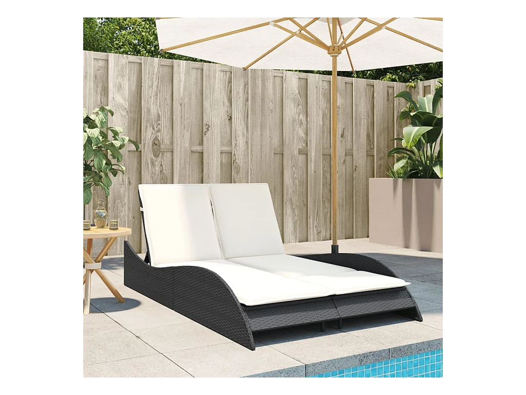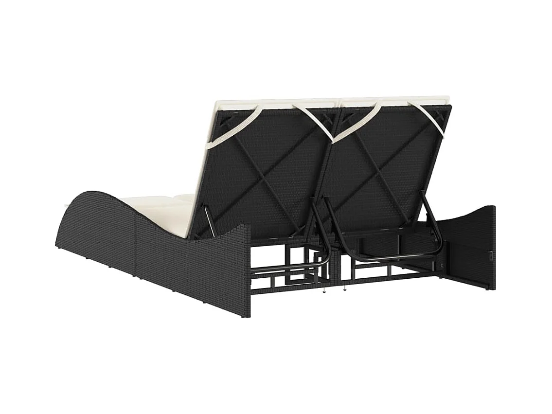 Chaise longue avec coussins noir 114x205x73 résine tressée