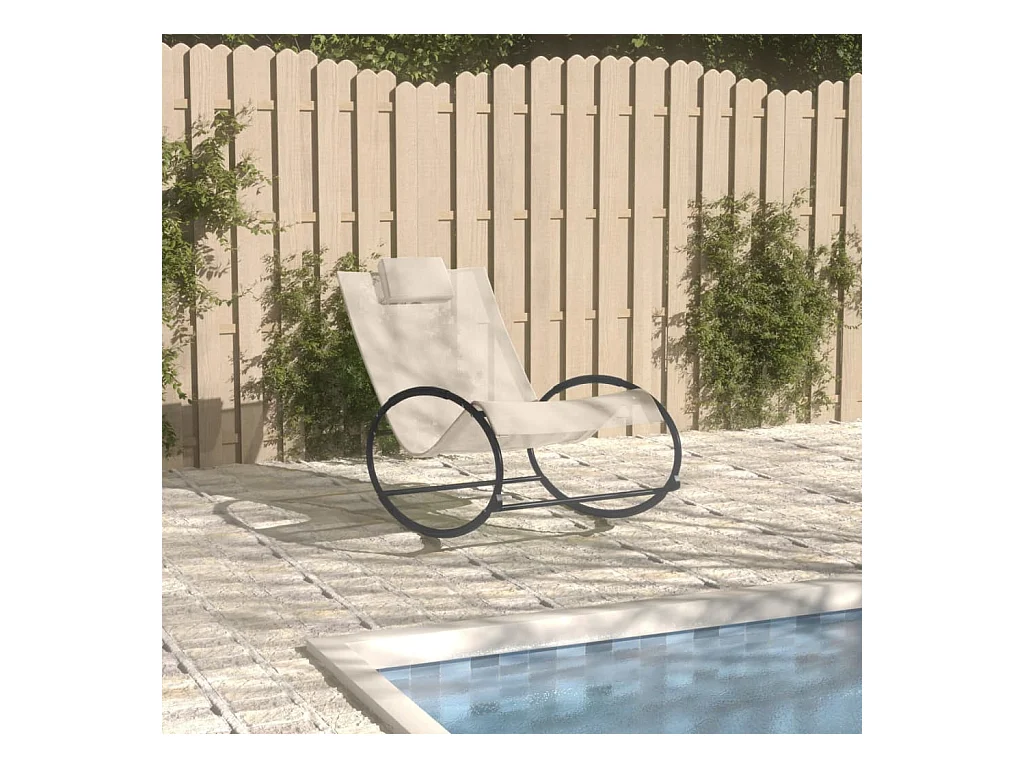 Chaises longues à bascule 2 pcs Crème Acier et textilène