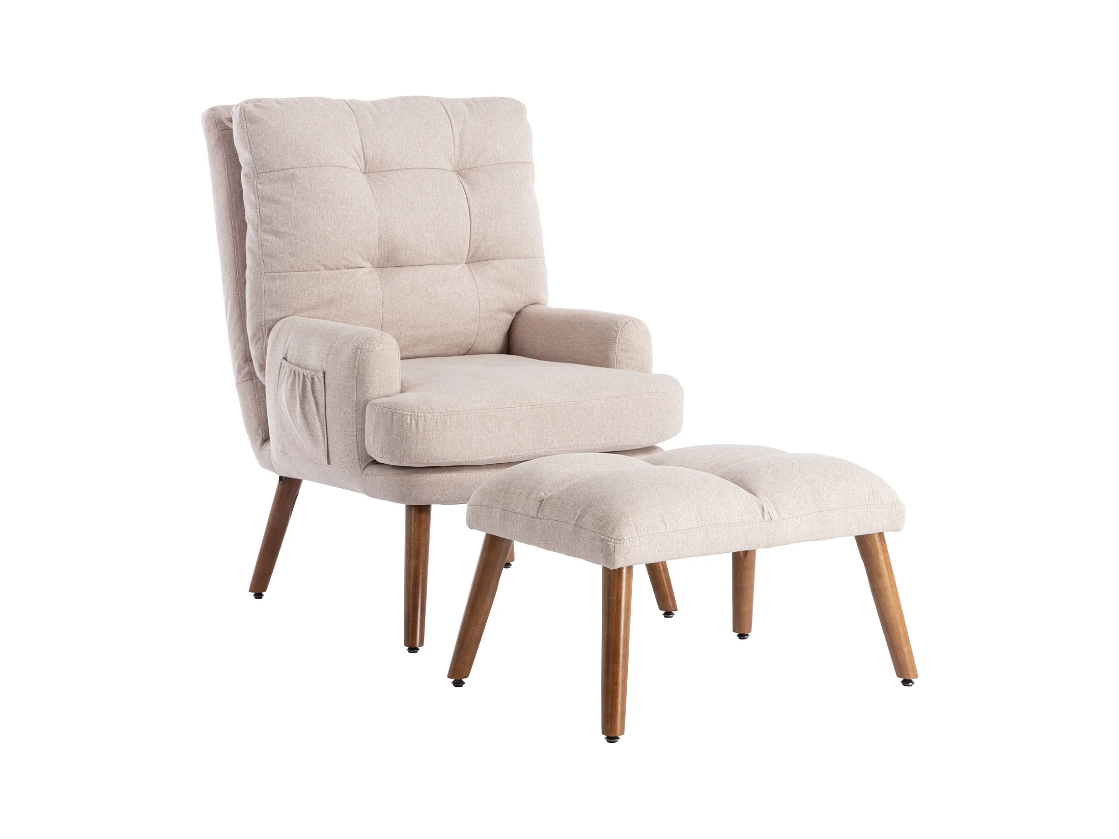 Chaise longue avec repose-pieds, dossier réglable sur 10 niveaux, inclinable, chaise avec étagère latérale-beige
