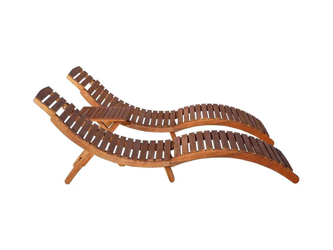 Chaise longue avec table à thé 3 pcs Bois d'acacia massif