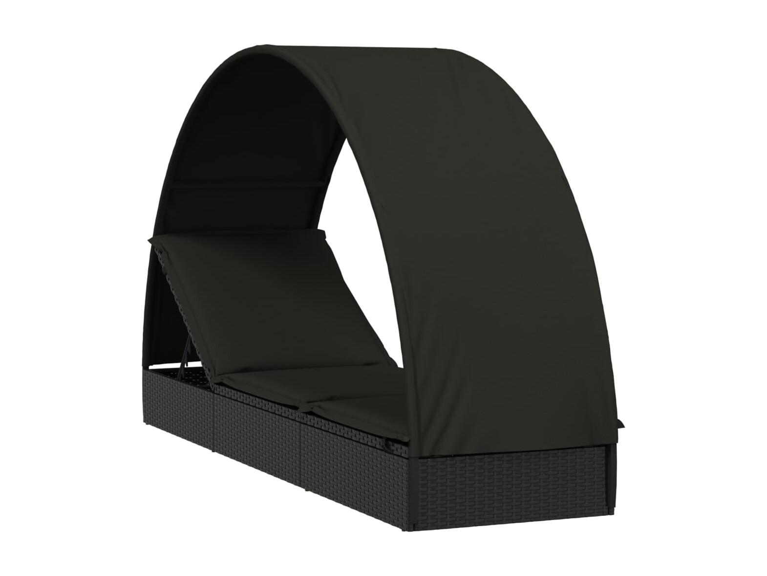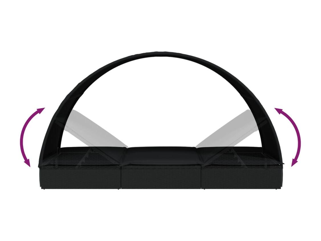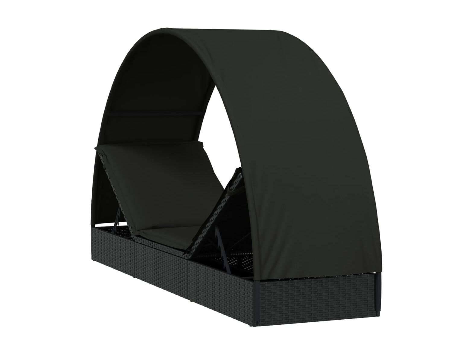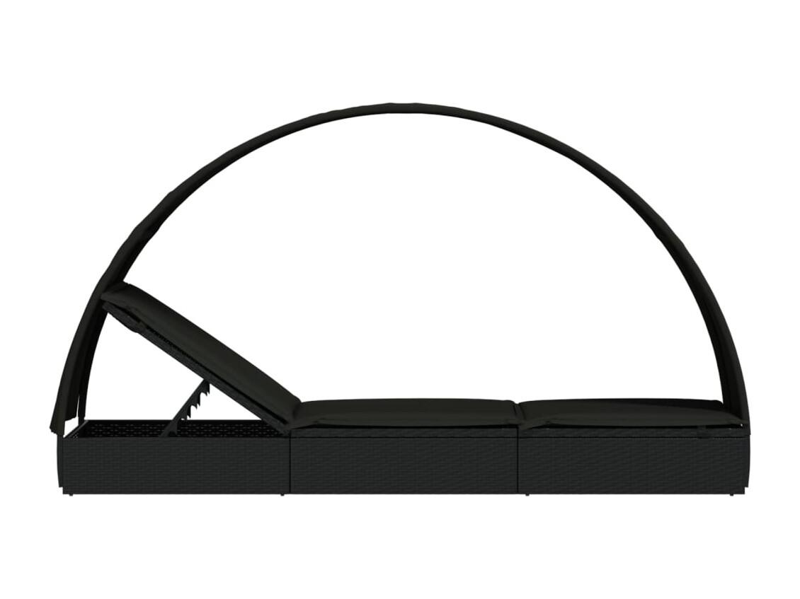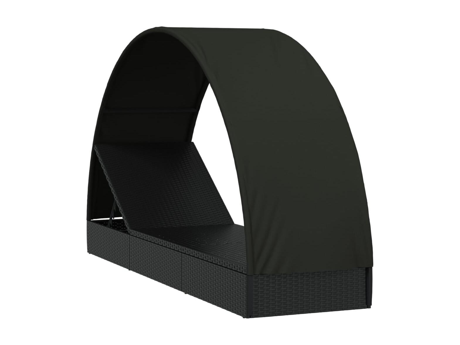 Chaise longue avec toit rond noir 211x57x140 résine tressée