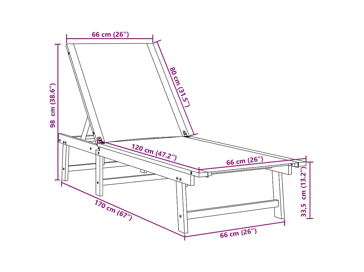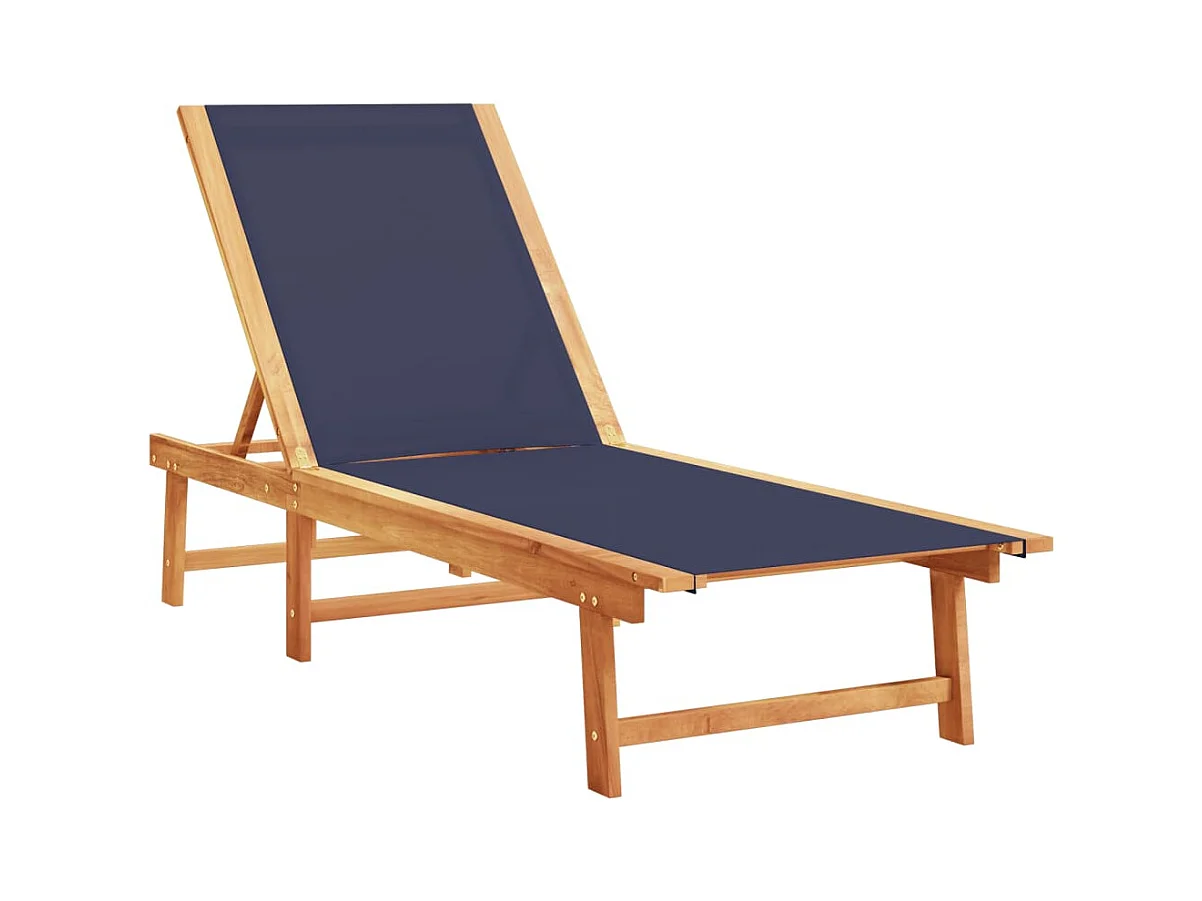 Chaise longue bleu bois d'acacia solide et textilène