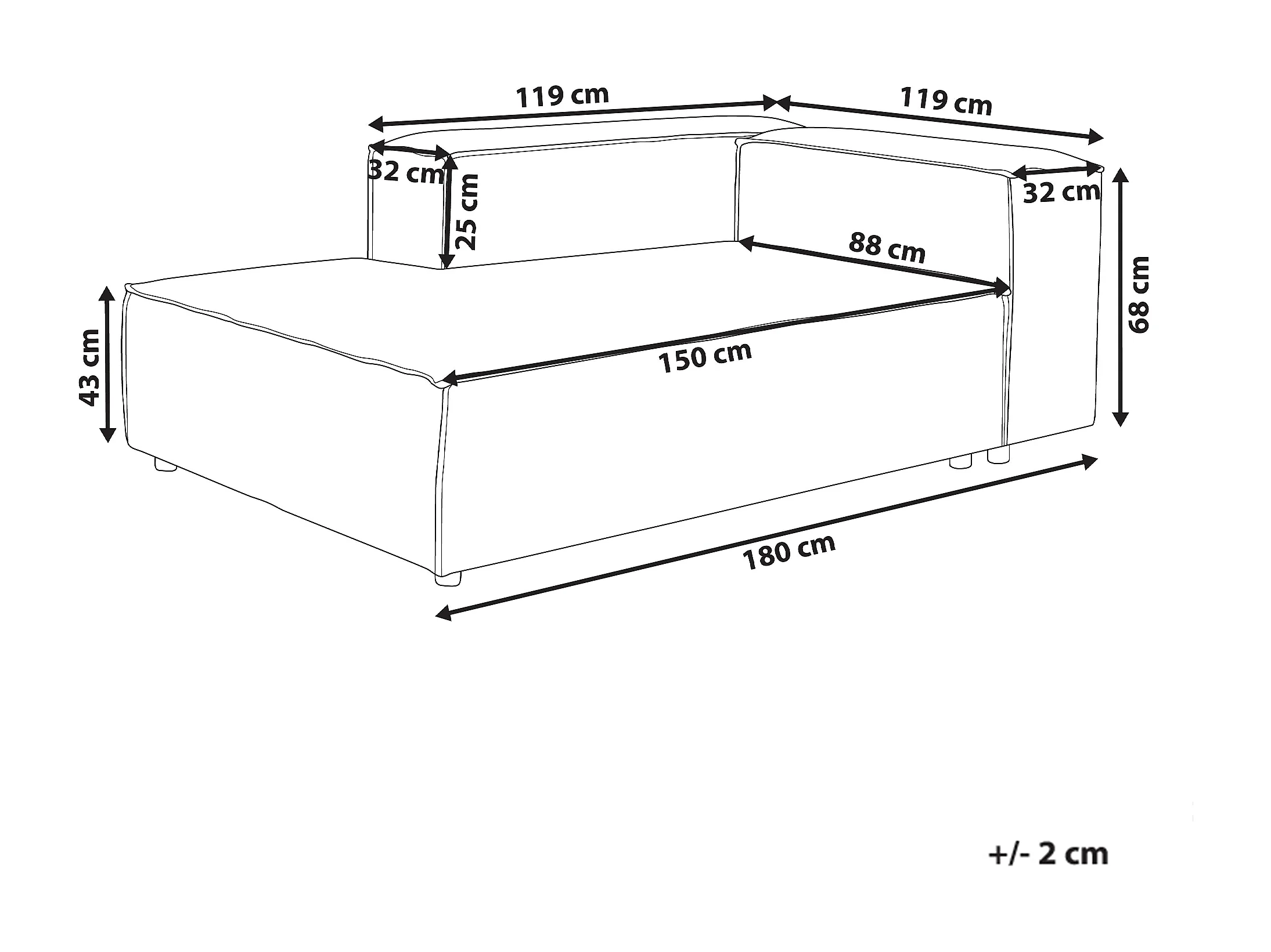 Chaise longue côté droit ARDAL Velours côtelé Taupe