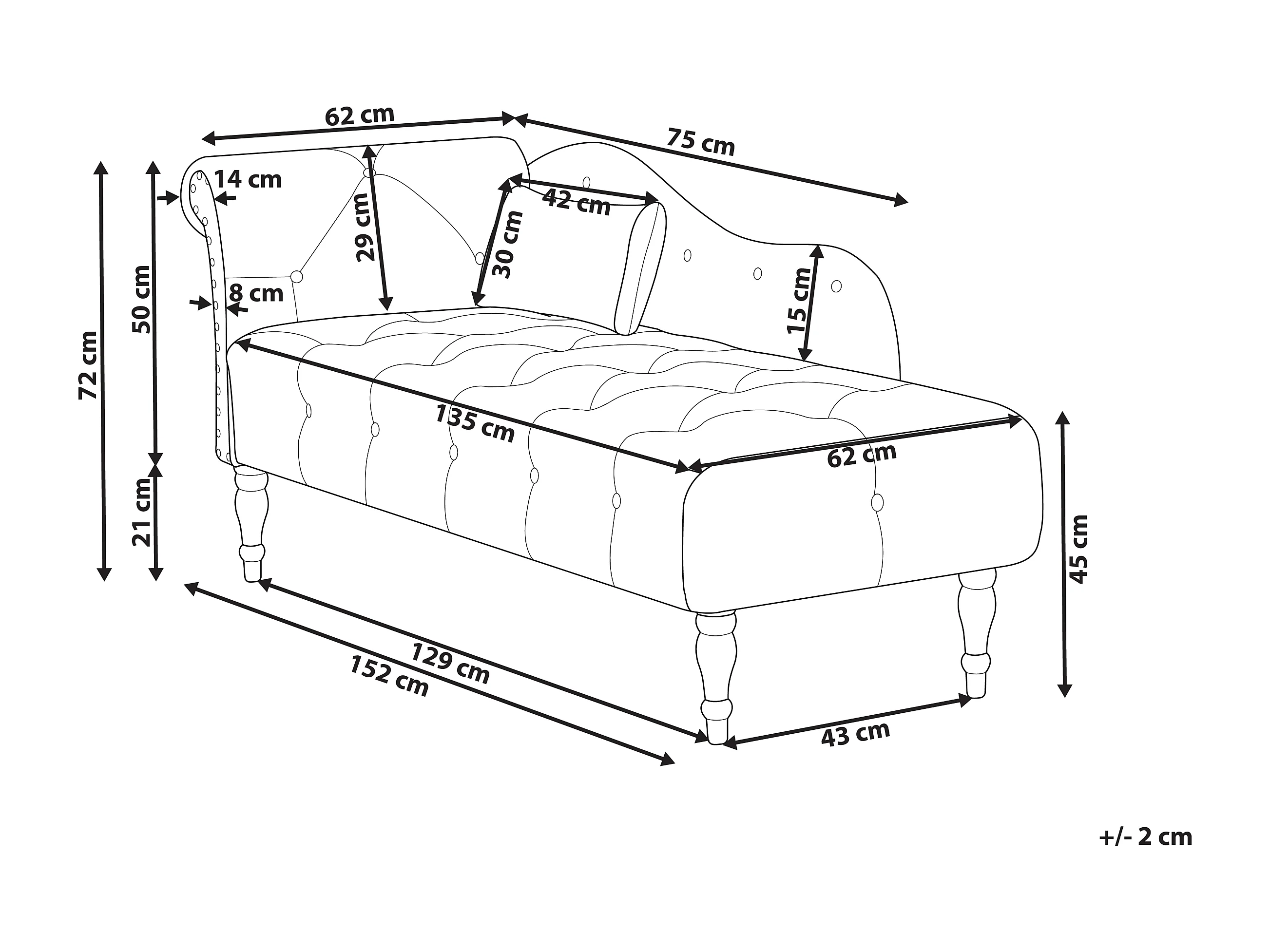 Chaise longue côté gauche IVRY Velours Beige clair