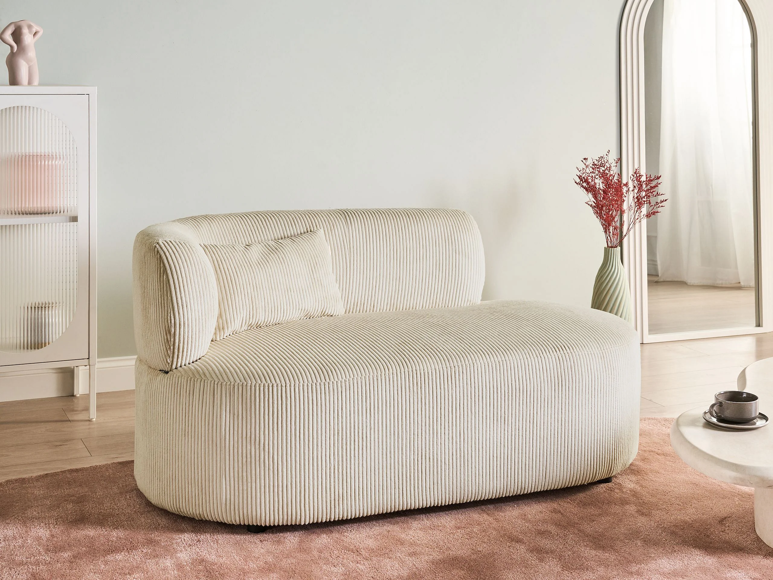Chaise longue côté gauche VANVEY Velours côtelé Beige clair