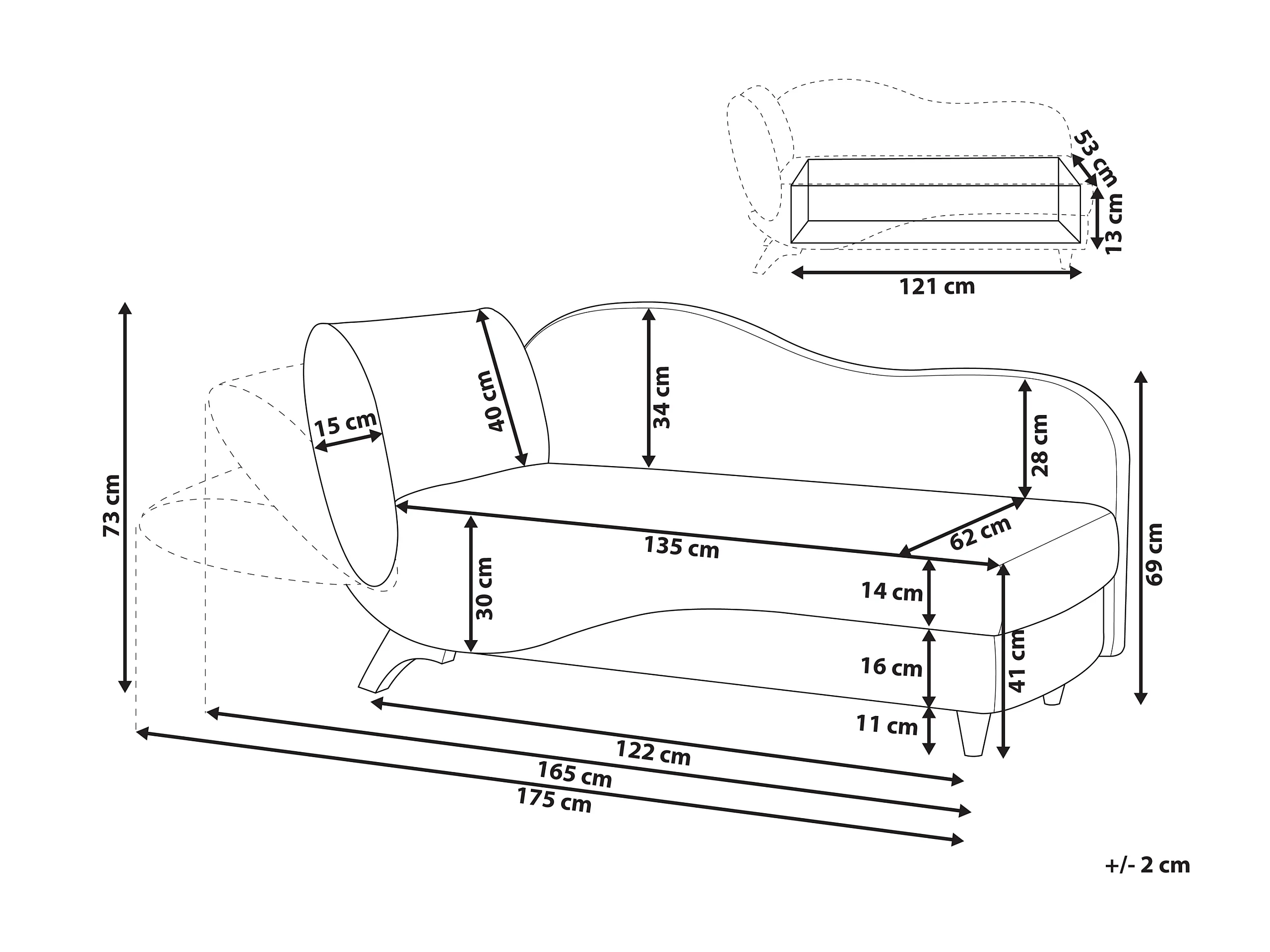 Chaise longue côté droite MERI Lin synthétique Bleu foncé avec rangement