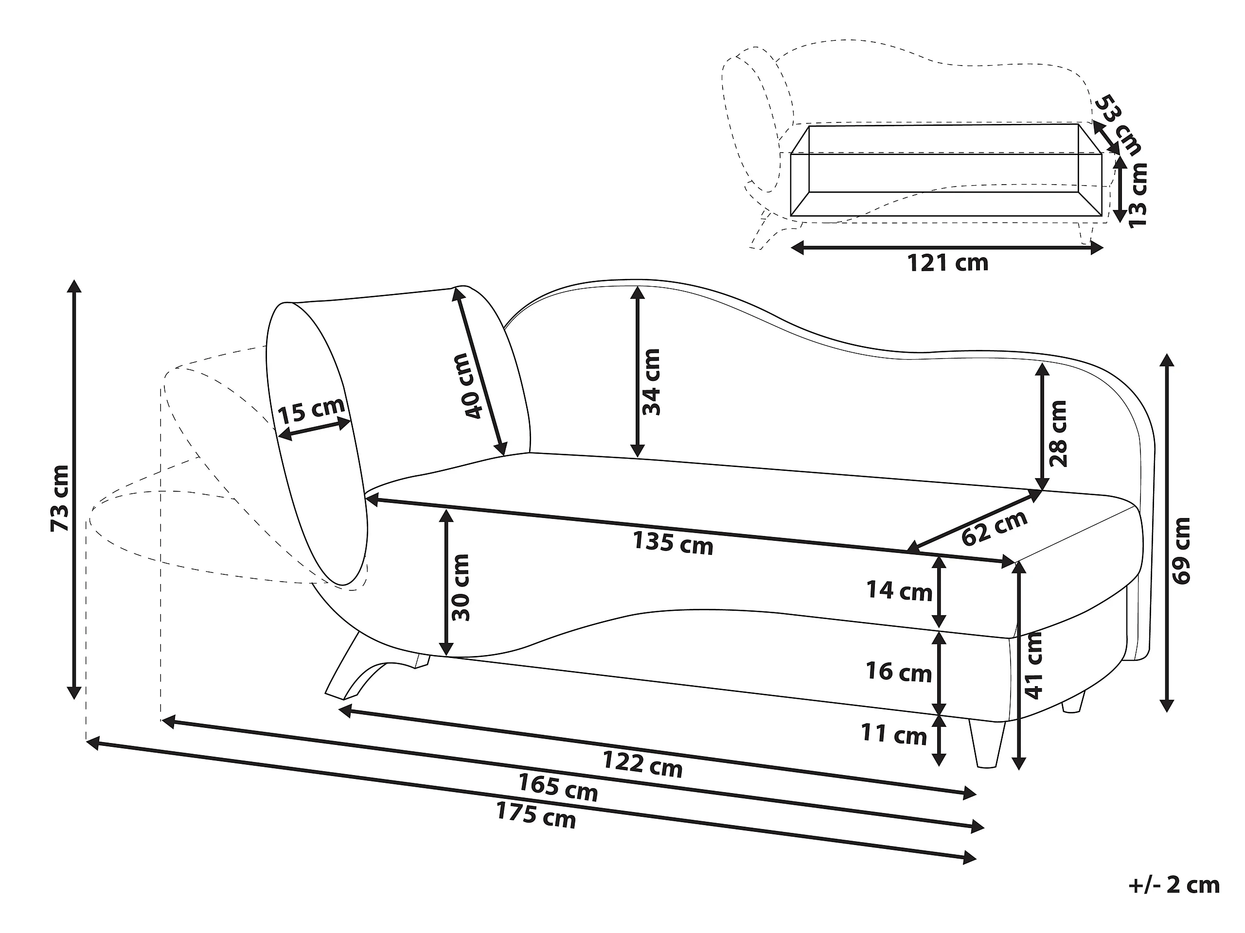 Chaise longue côté gauche MERI Lin synthétique Gris clair avec rangement