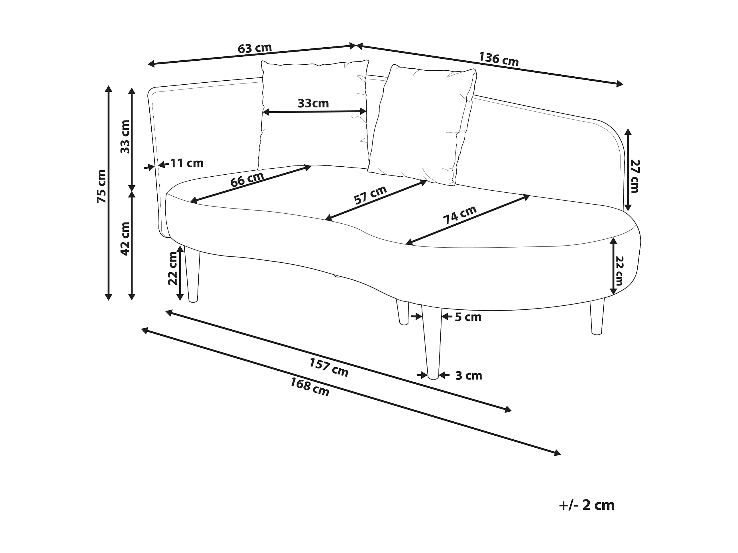 Chaise longue côté droite en velours blanc crème CHAUMONT