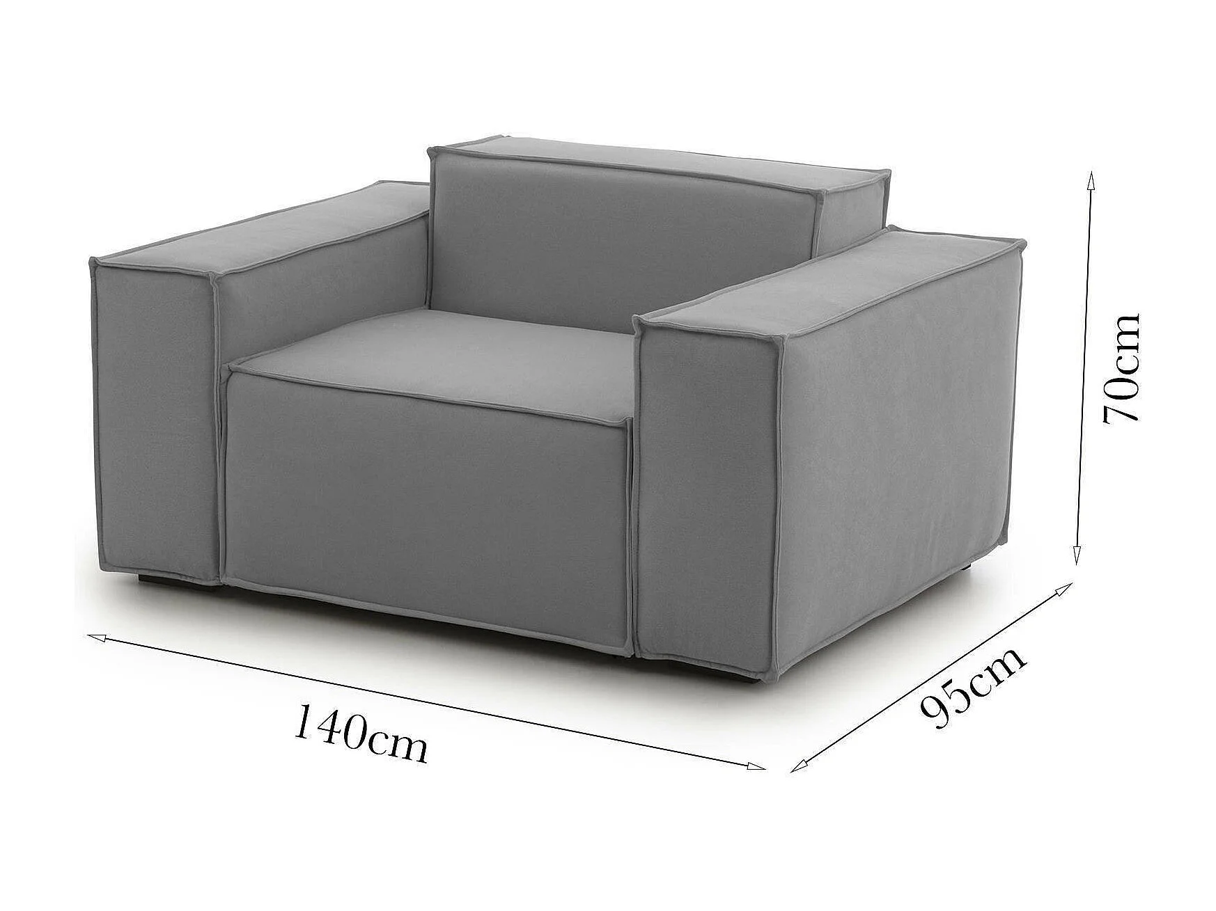 Fauteuil Dciurri, Fauteuil de salon, 100% Made in Italy, Fauteuil relaxant en tissu rembourré, 140x95h70 cm, Gris