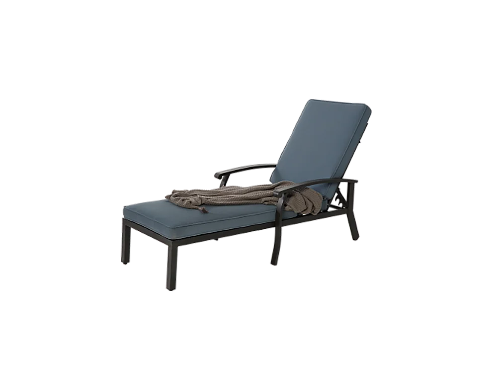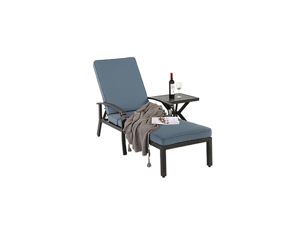 Chaise longue de jardin 1 pièce avec coussin bleu imperméable en coton inclinable et réglable structure aluminium antirouille transat piscine extérieur