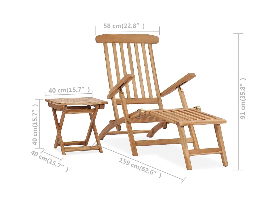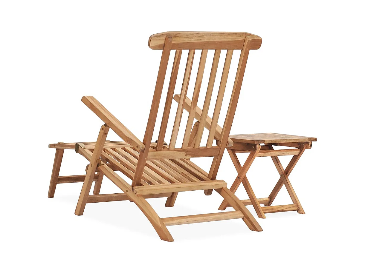 Chaise longue de jardin avec repose-pied et table Bois de teck