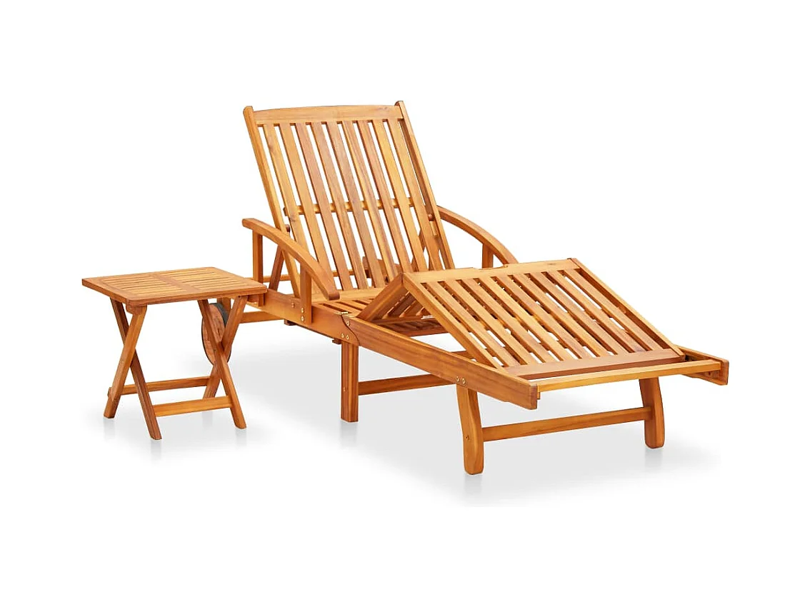 Chaise longue de jardin avec table et coussin Bois d'acacia 29
