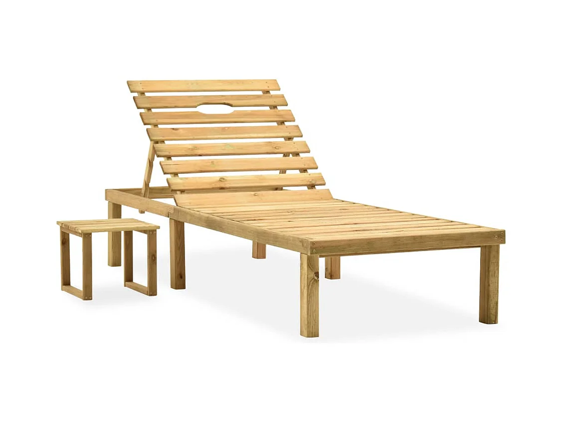 Chaise longue de jardin avec table et coussin Pin imprégné