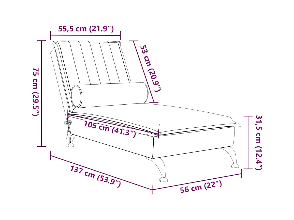 Chaise longue de massage avec traversin crème velours