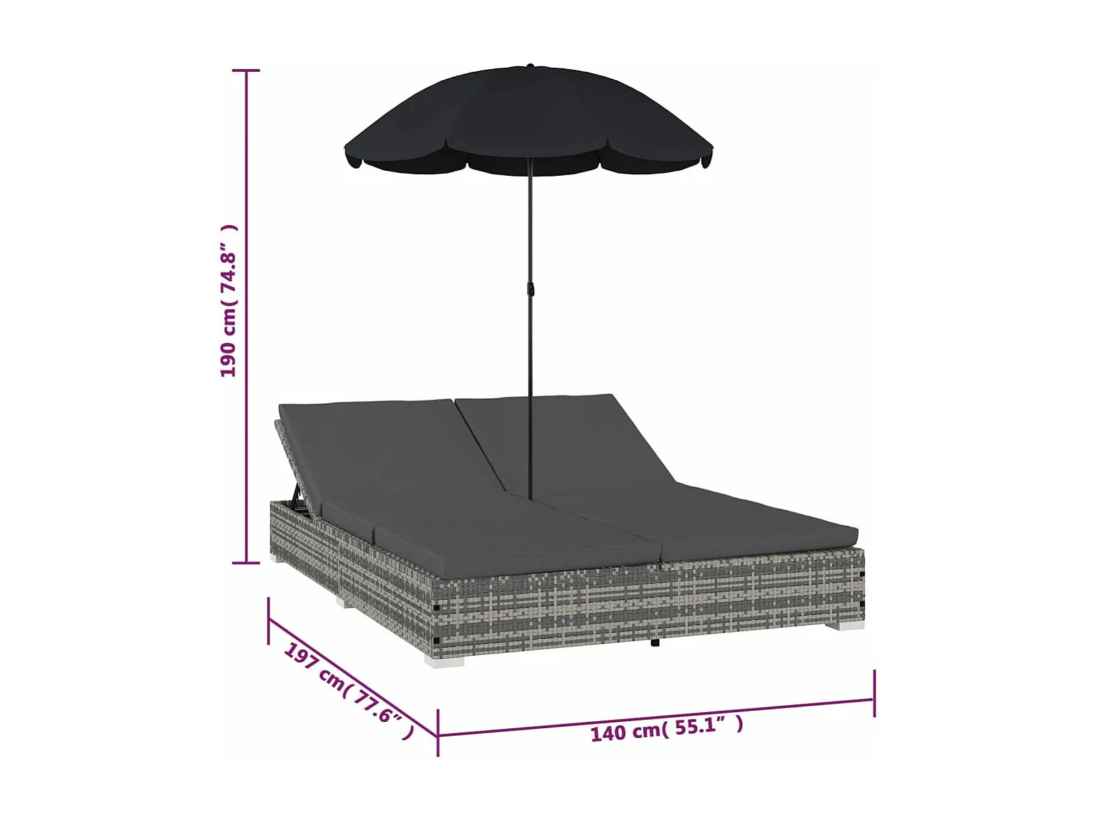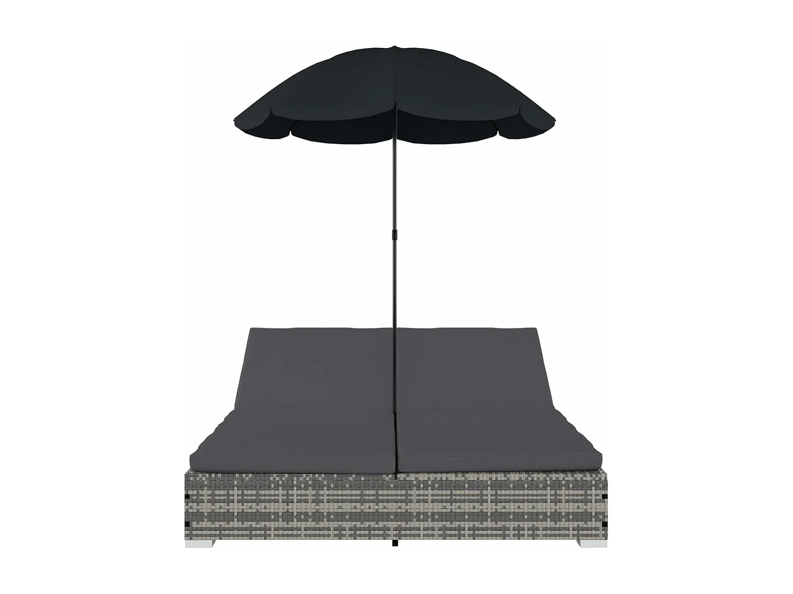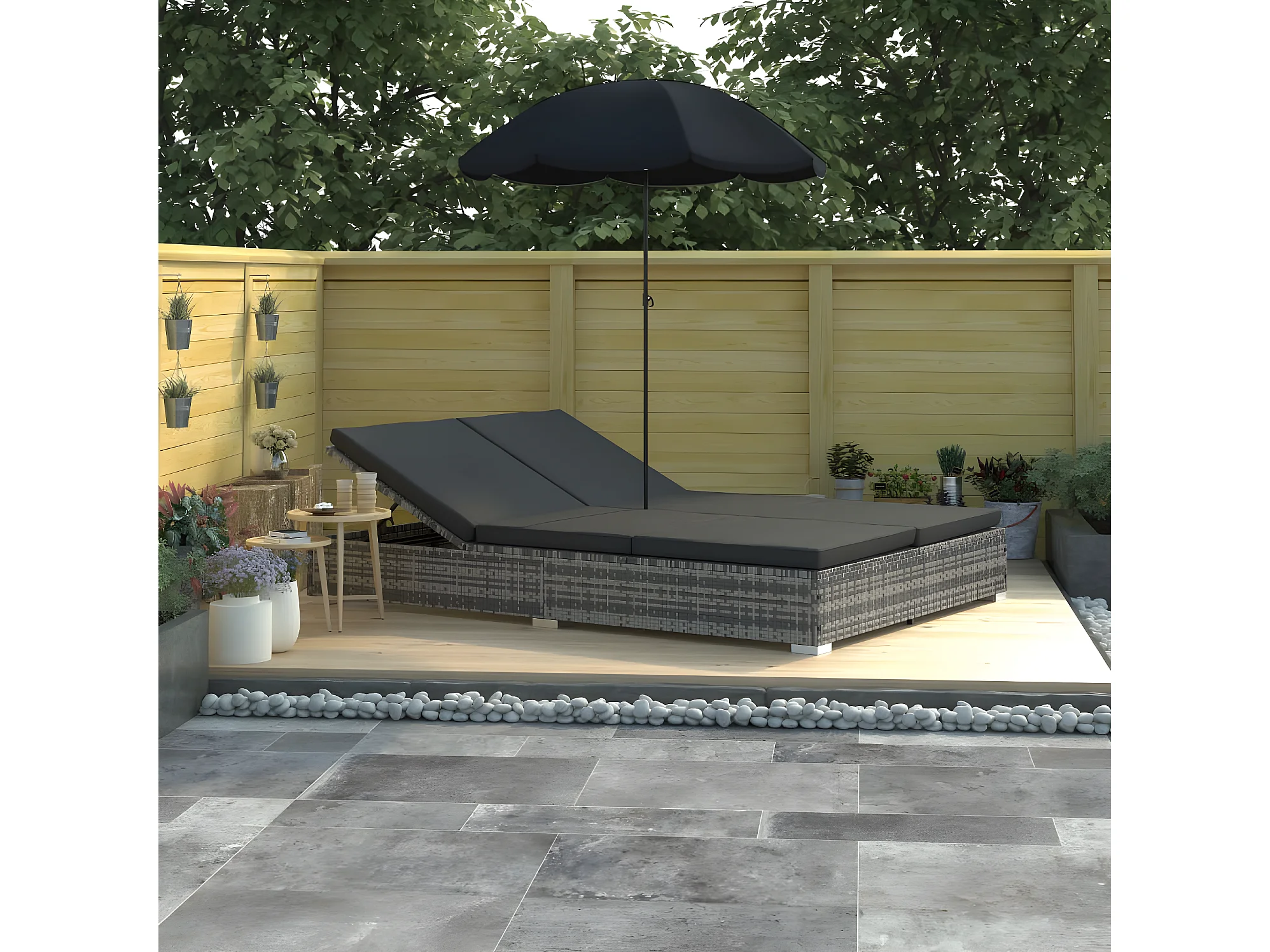 Chaise longue d'extérieur avec parasol Résine tressée Gris
