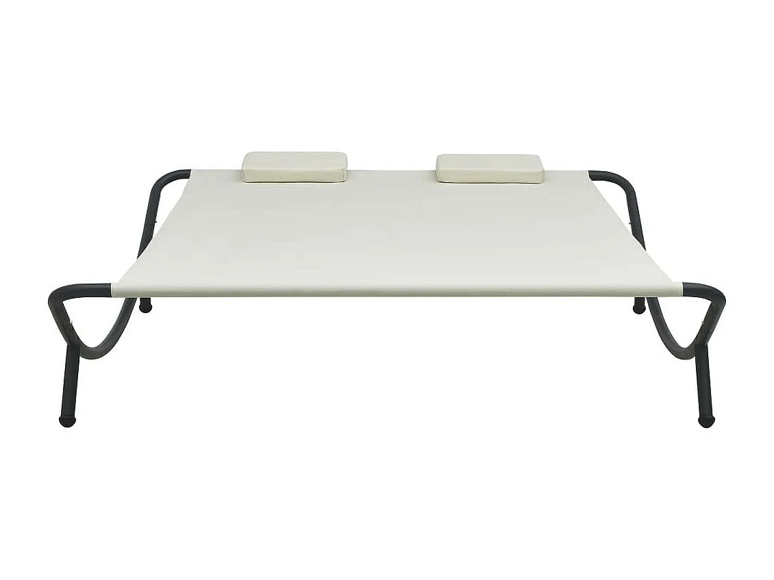Chaise longue de jardin avec auvent et oreiller Blanc crème