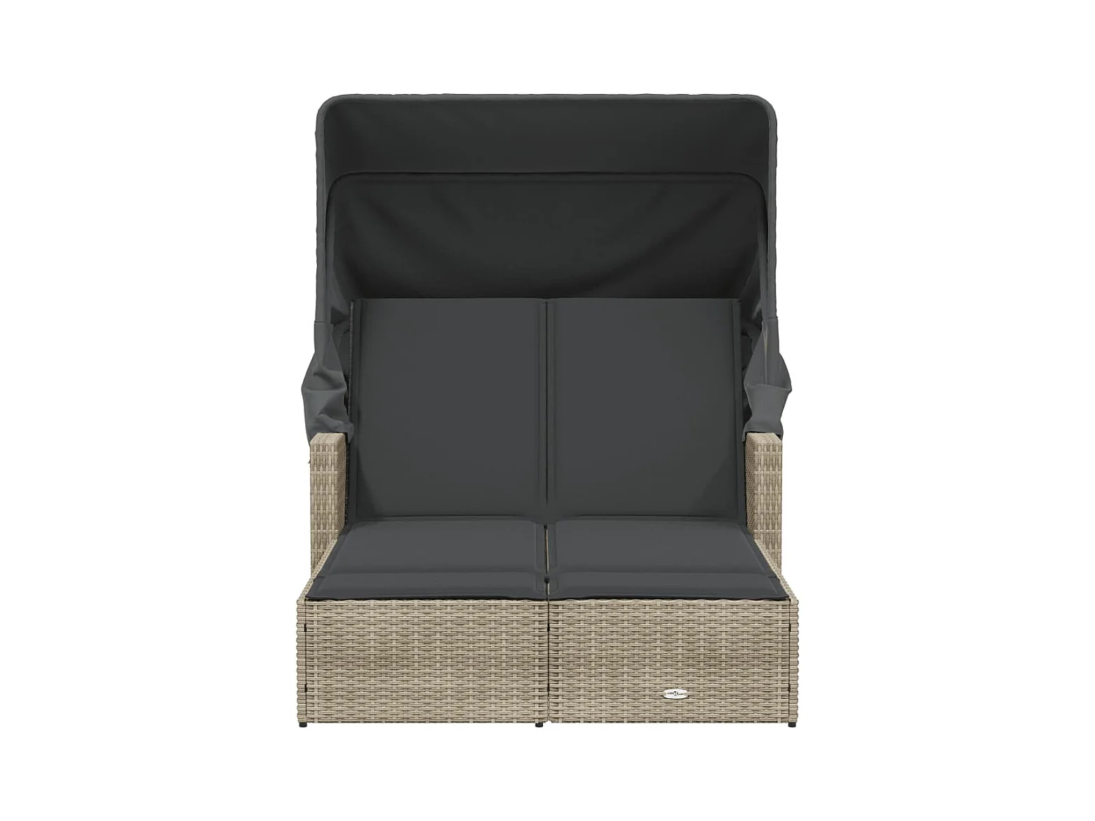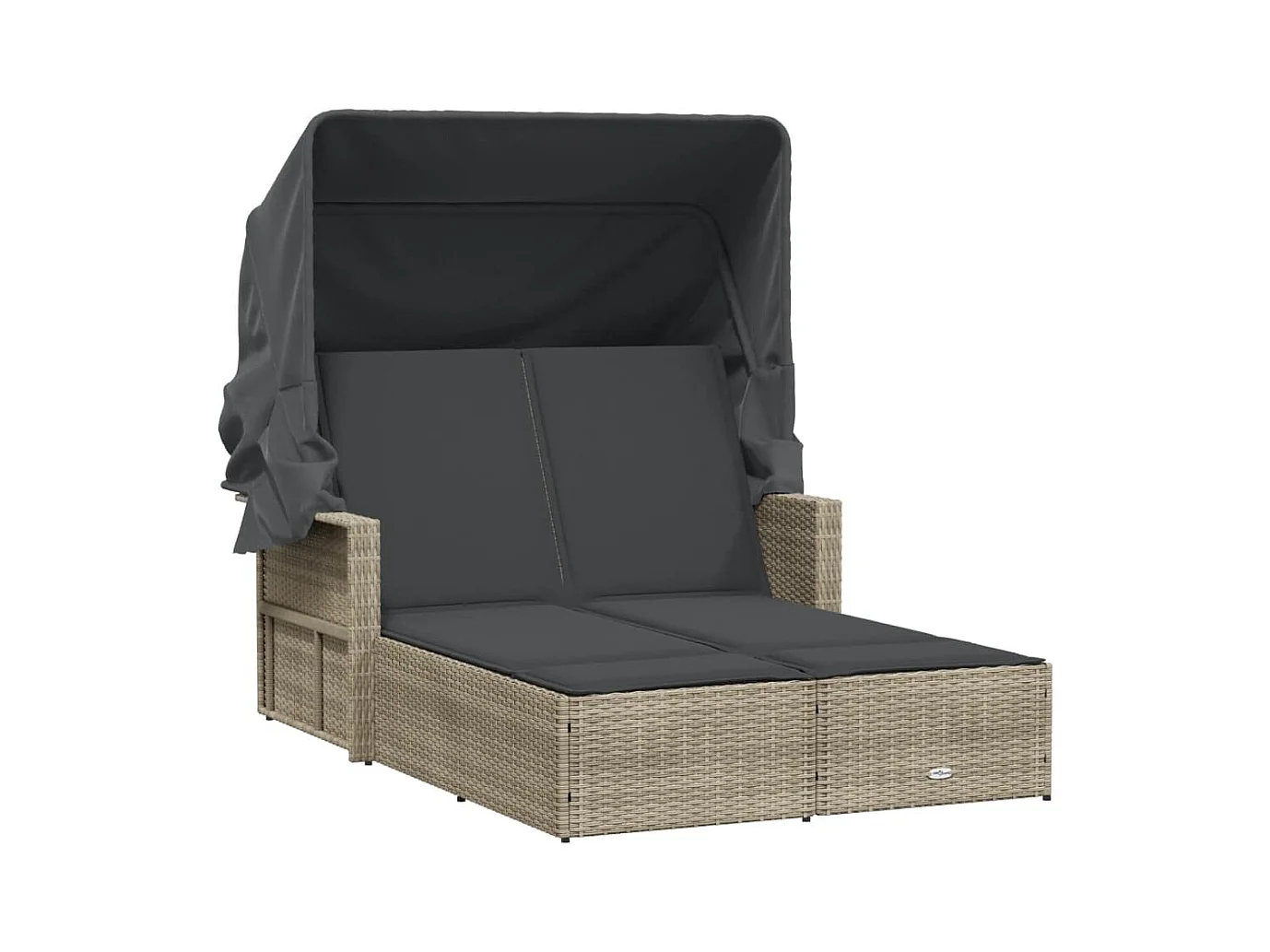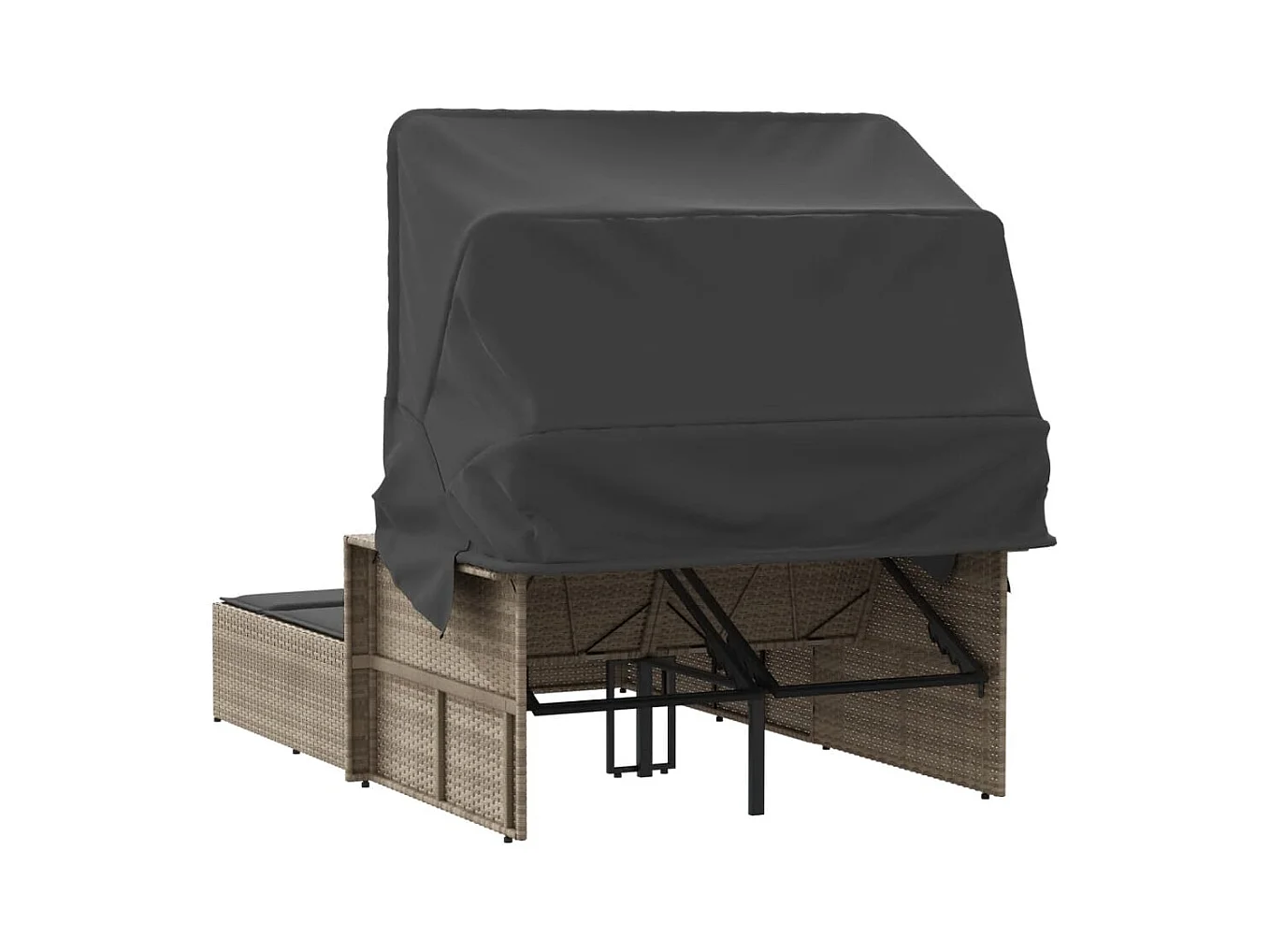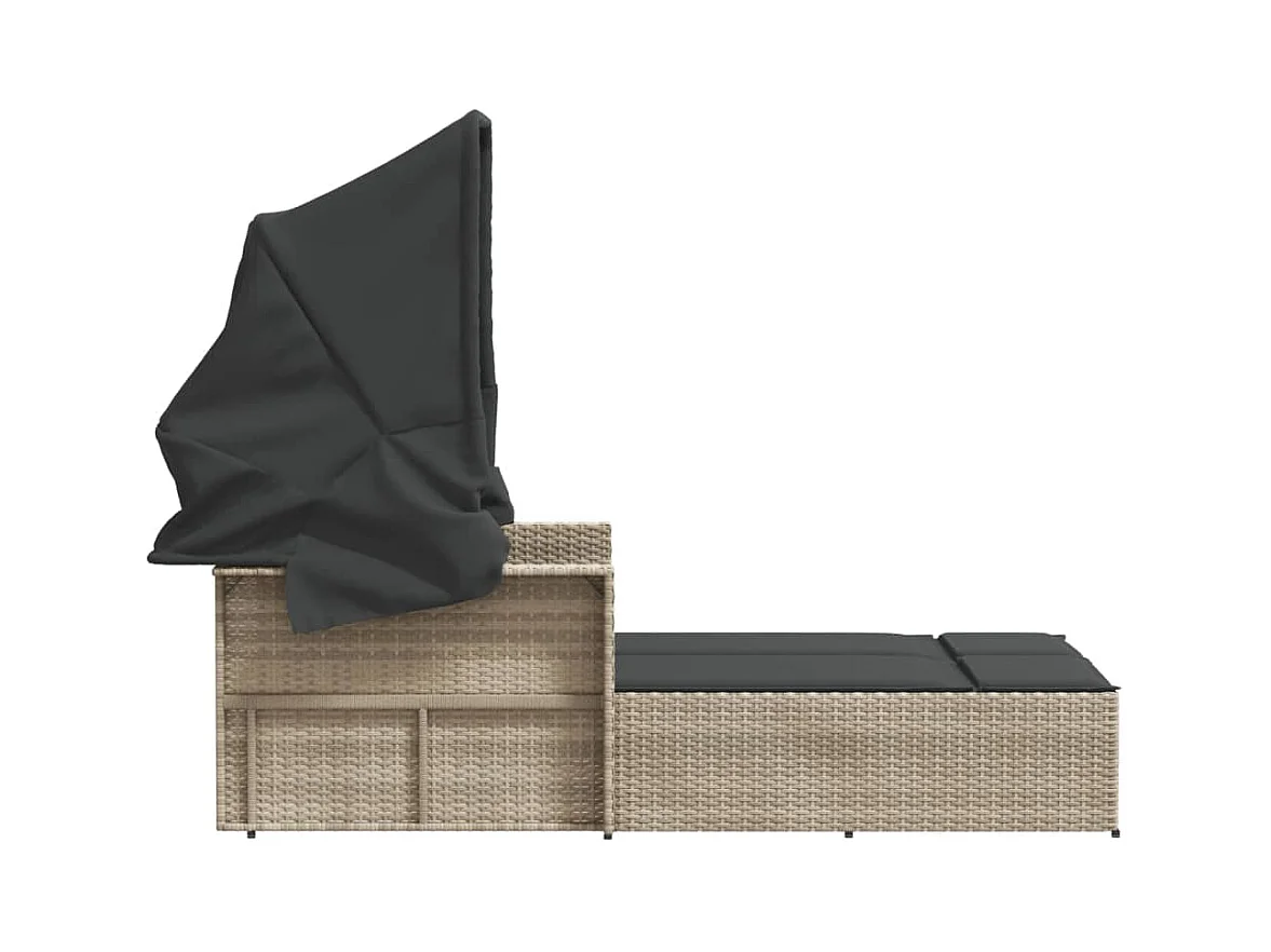 Chaise longue double avec auvent et coussins gris clair rotin