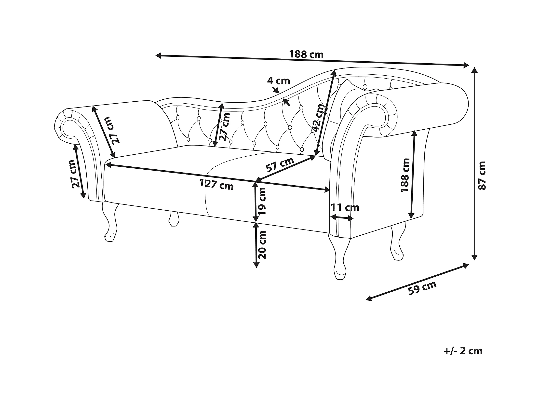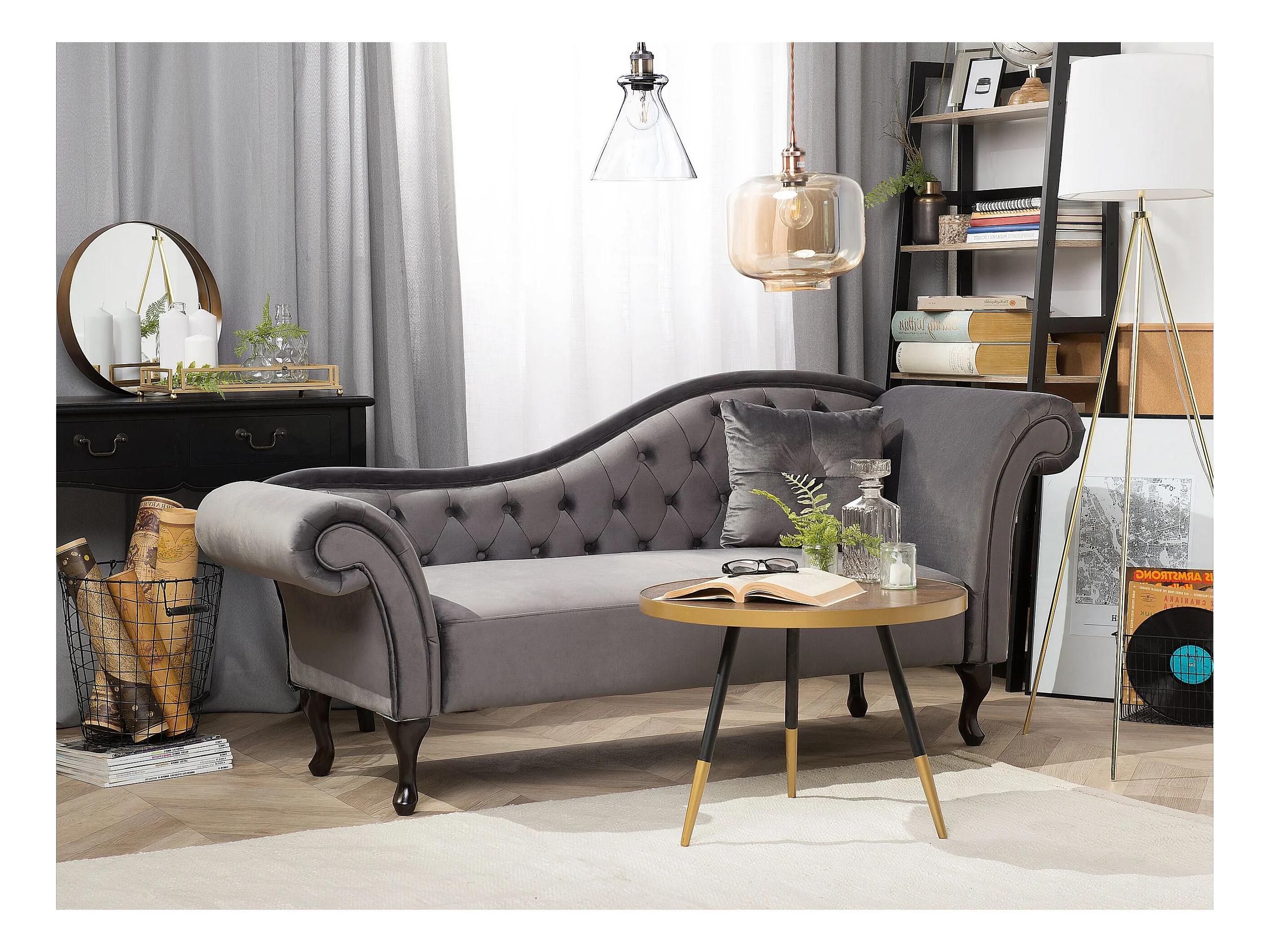 Chaise longue côté droit LATTES Velours Gris