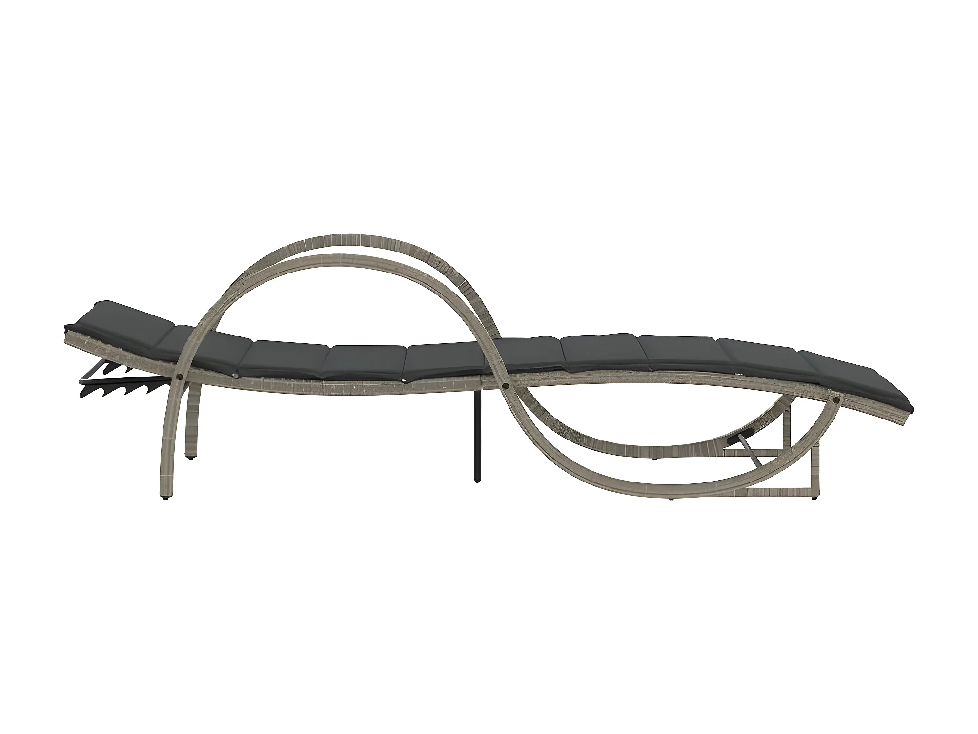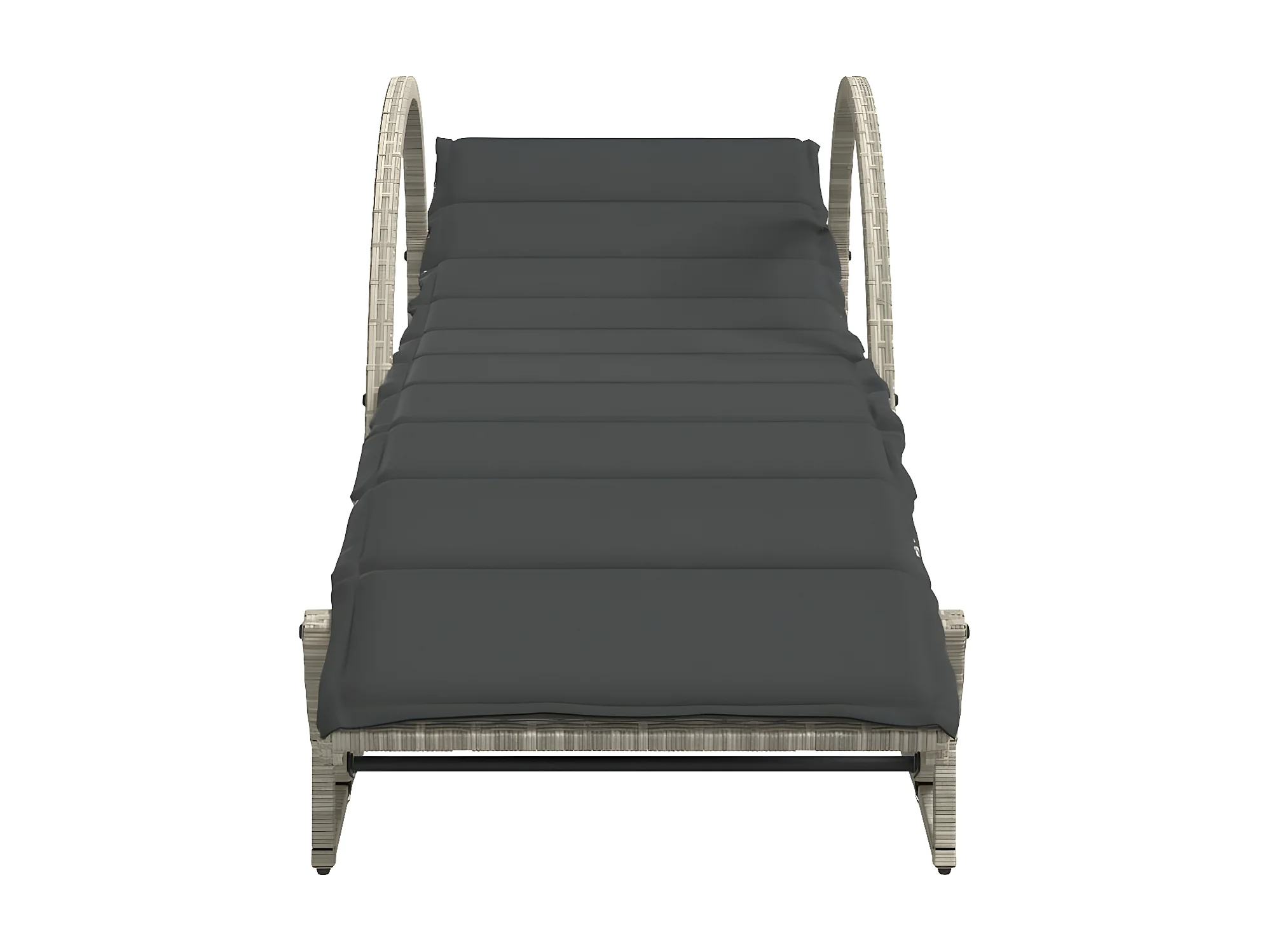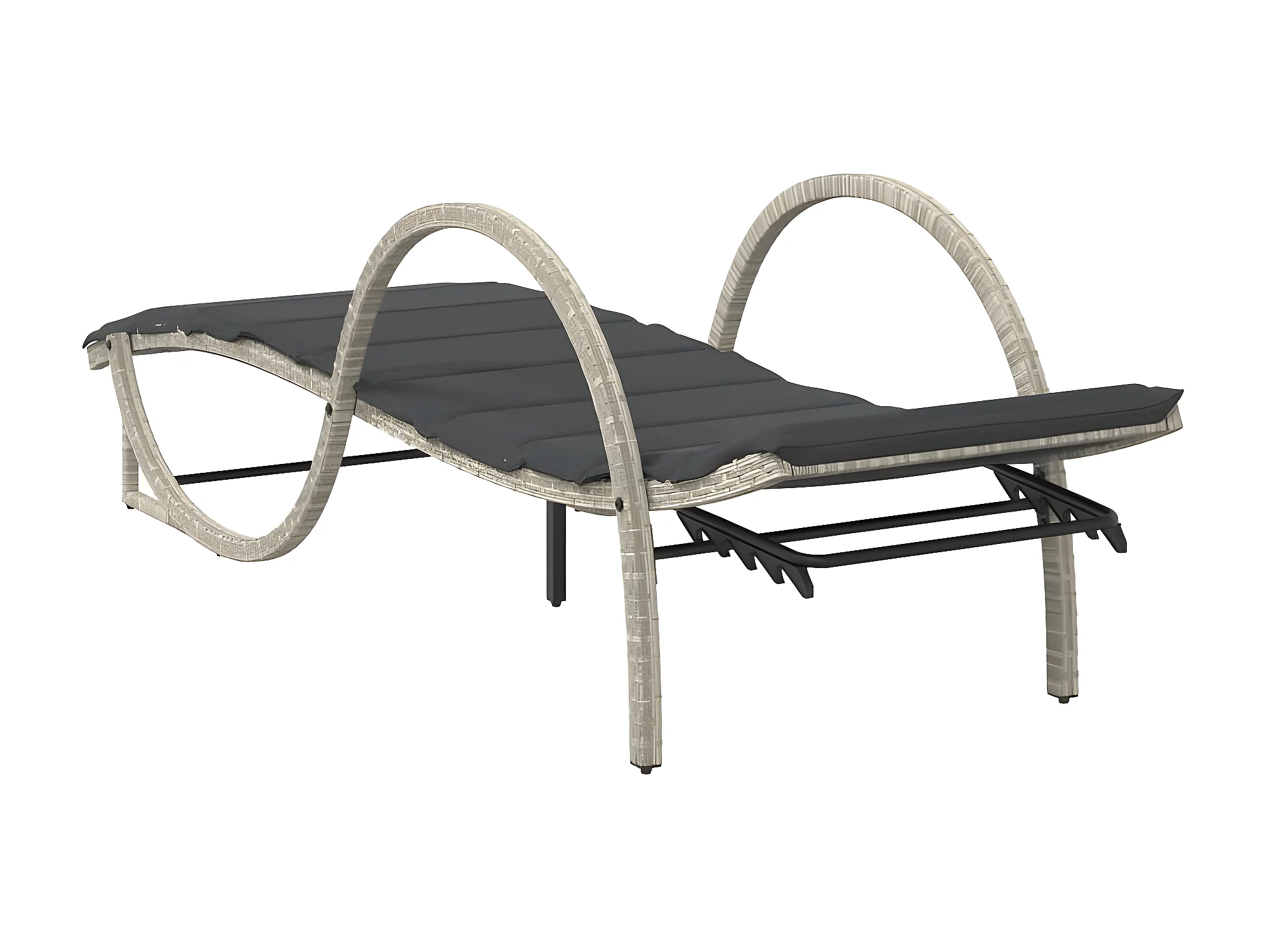 Chaise longue et coussin gris clair 60x199x42 résine tressée