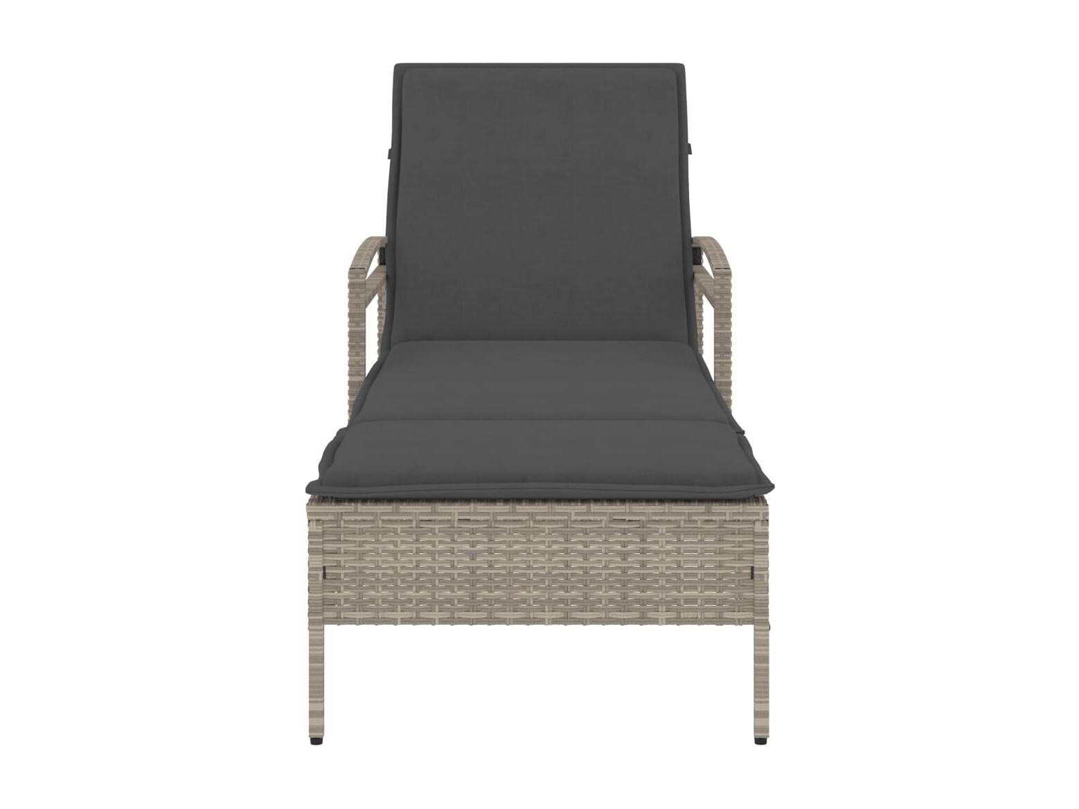 Chaise longue et coussin gris clair 63x200x81 résine tressée