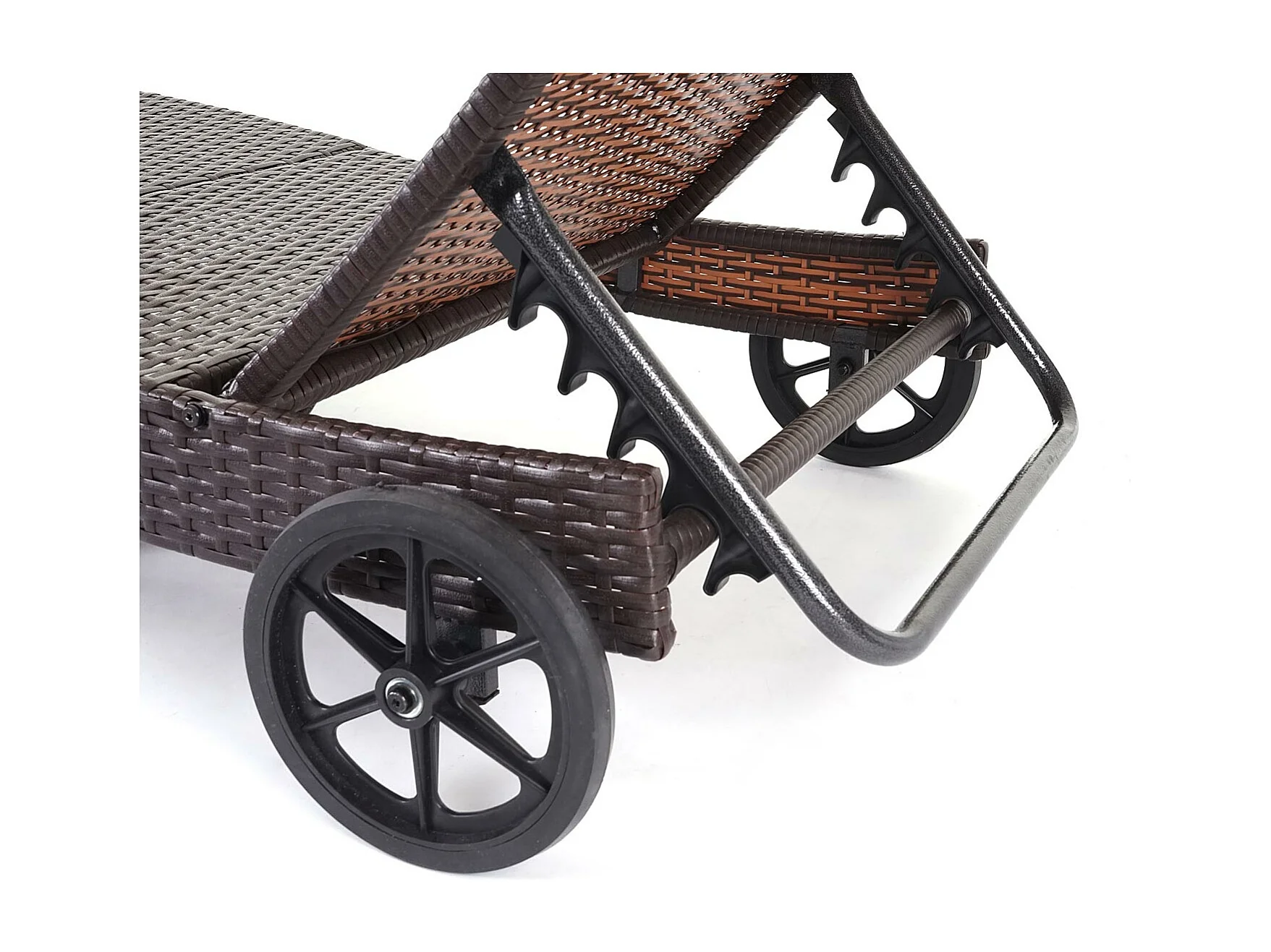 Chaise longue HWC-D80 en polyrotin - marron, coussin beige