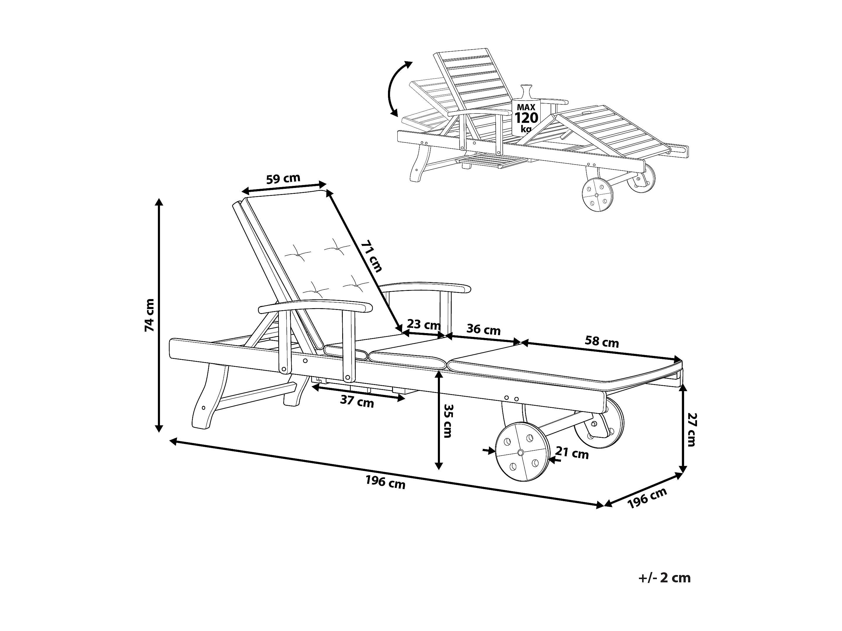 Chaise longue inclinable en bois d'acacia et coussin gris AMANTEA