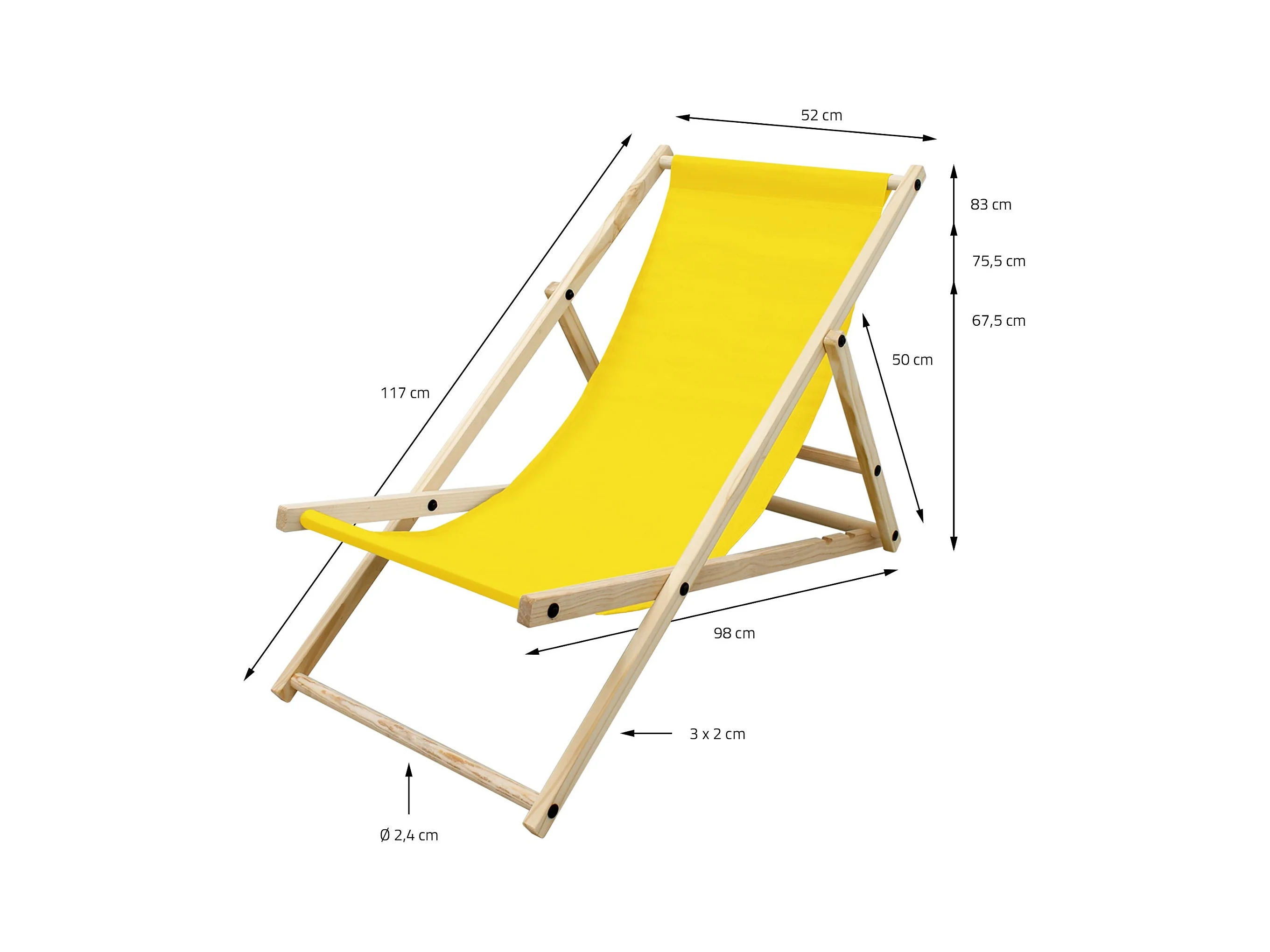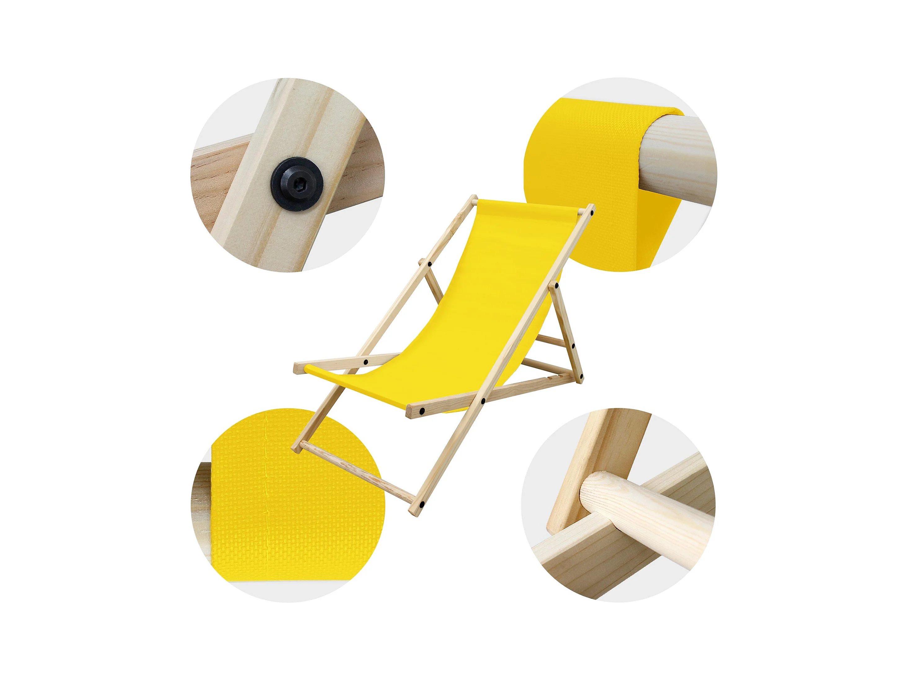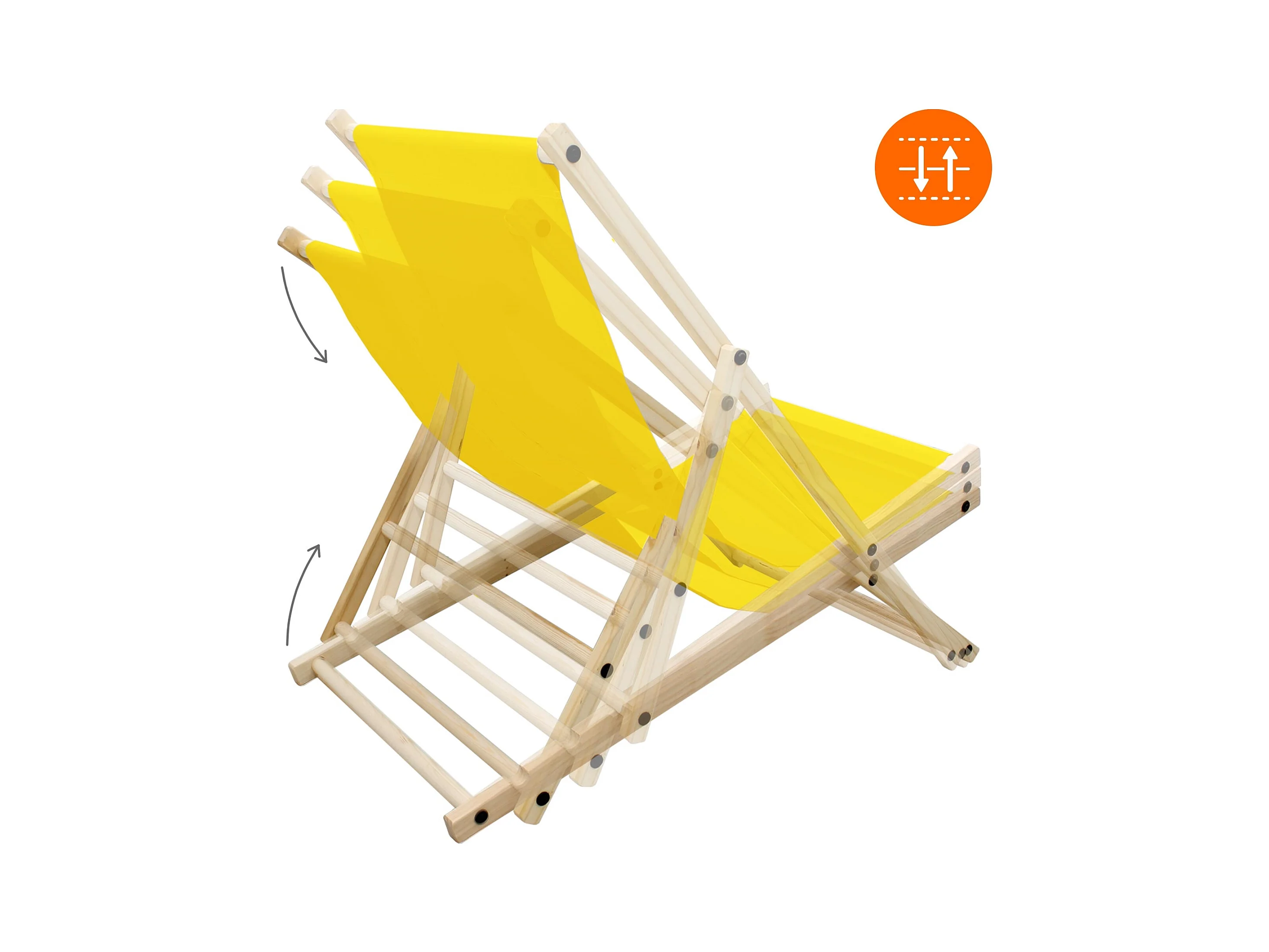 Chaise longue de jardin pliable jaune en bois chilienne 3 positions de couchage jusqu'à 120 kg usage intérieur et extérieur balcon terrasse patio