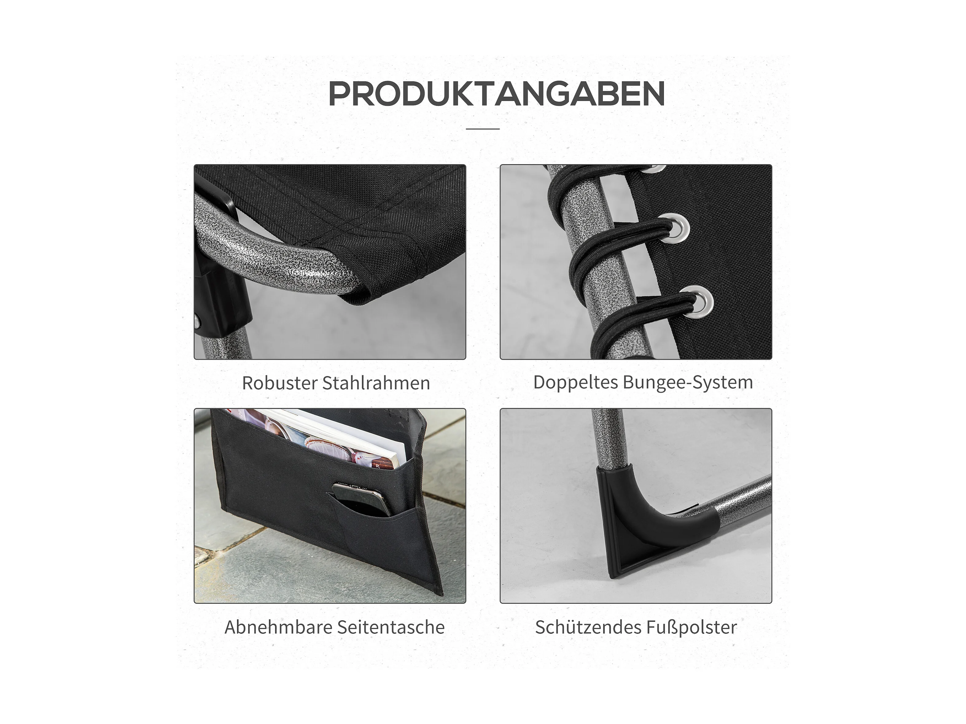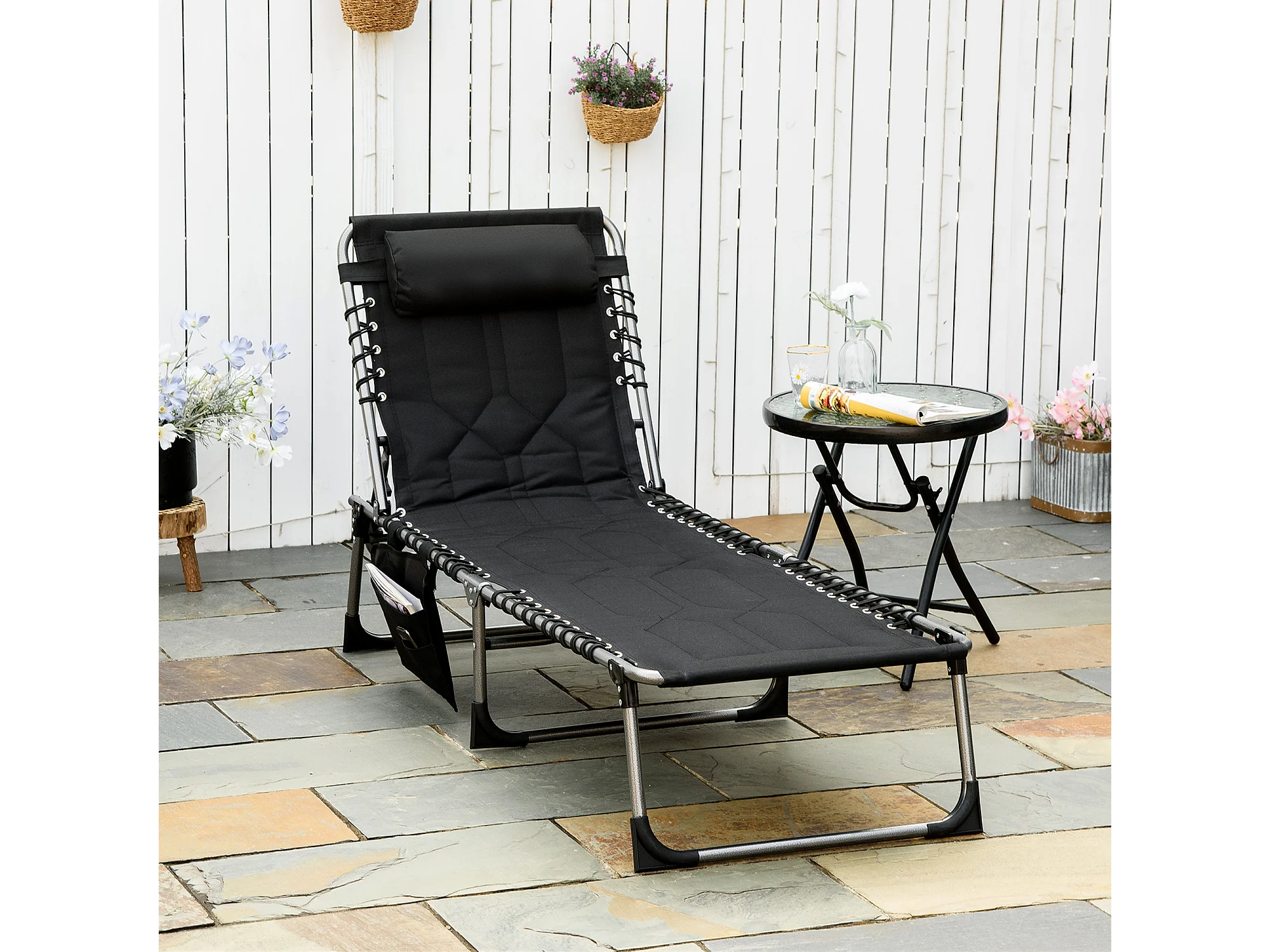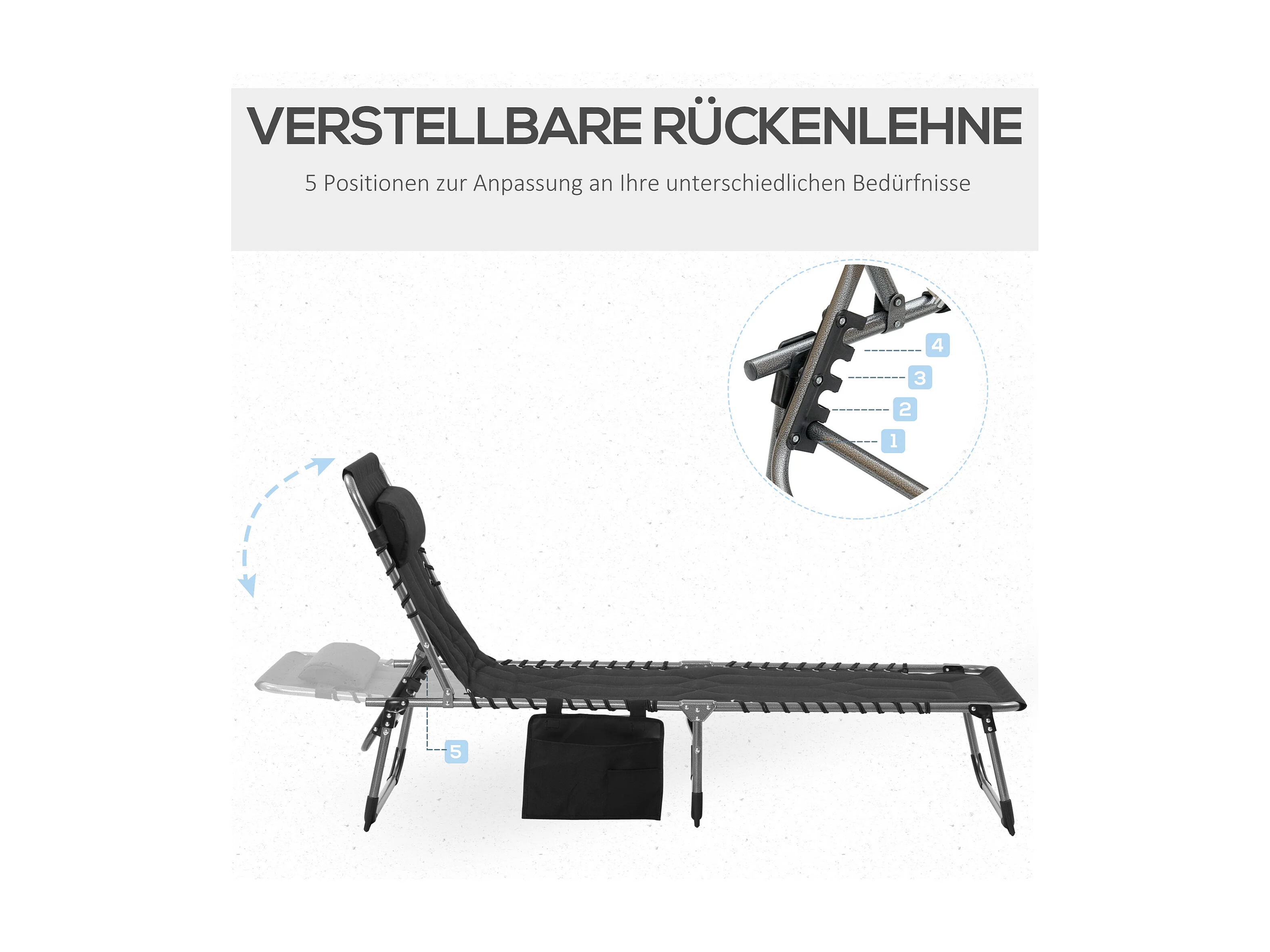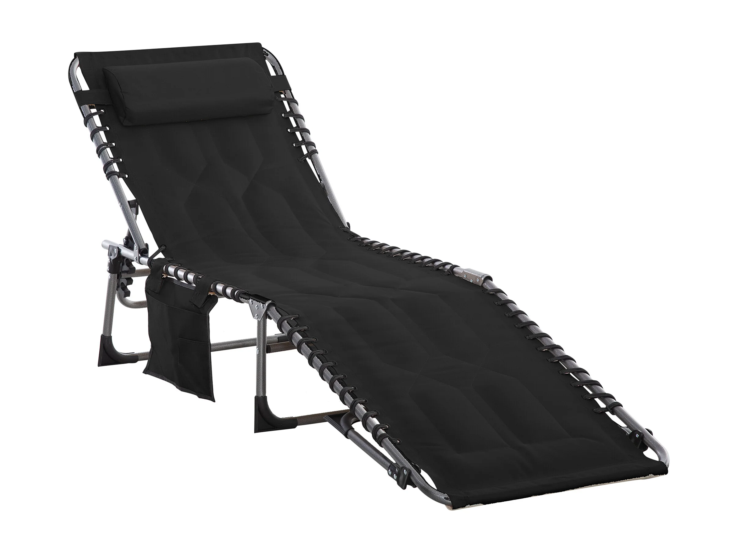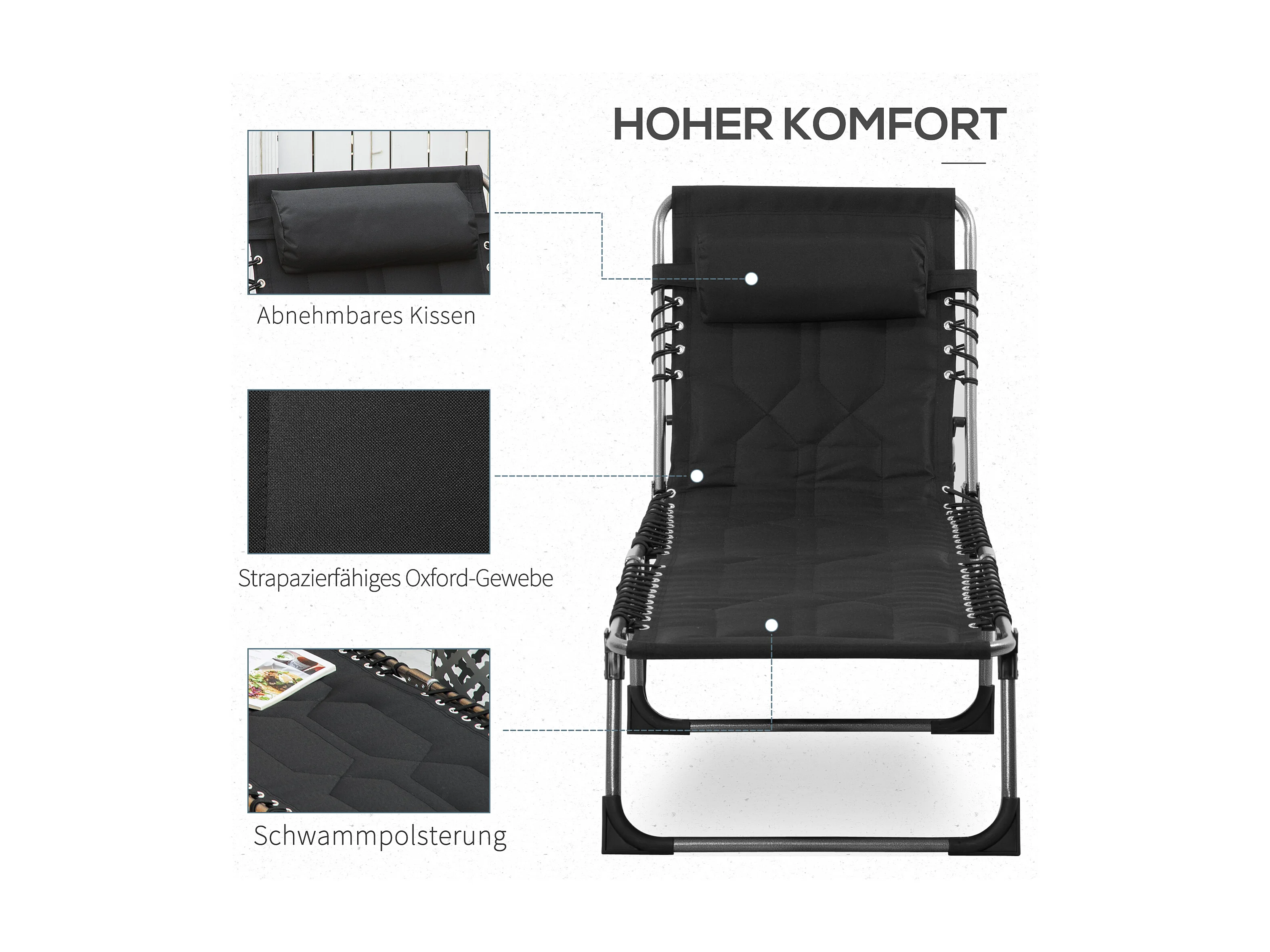 Chaise longue pliable avec coussin, 5 positions réglables, acier, tissu Oxford, noir (188x57x30 cm)