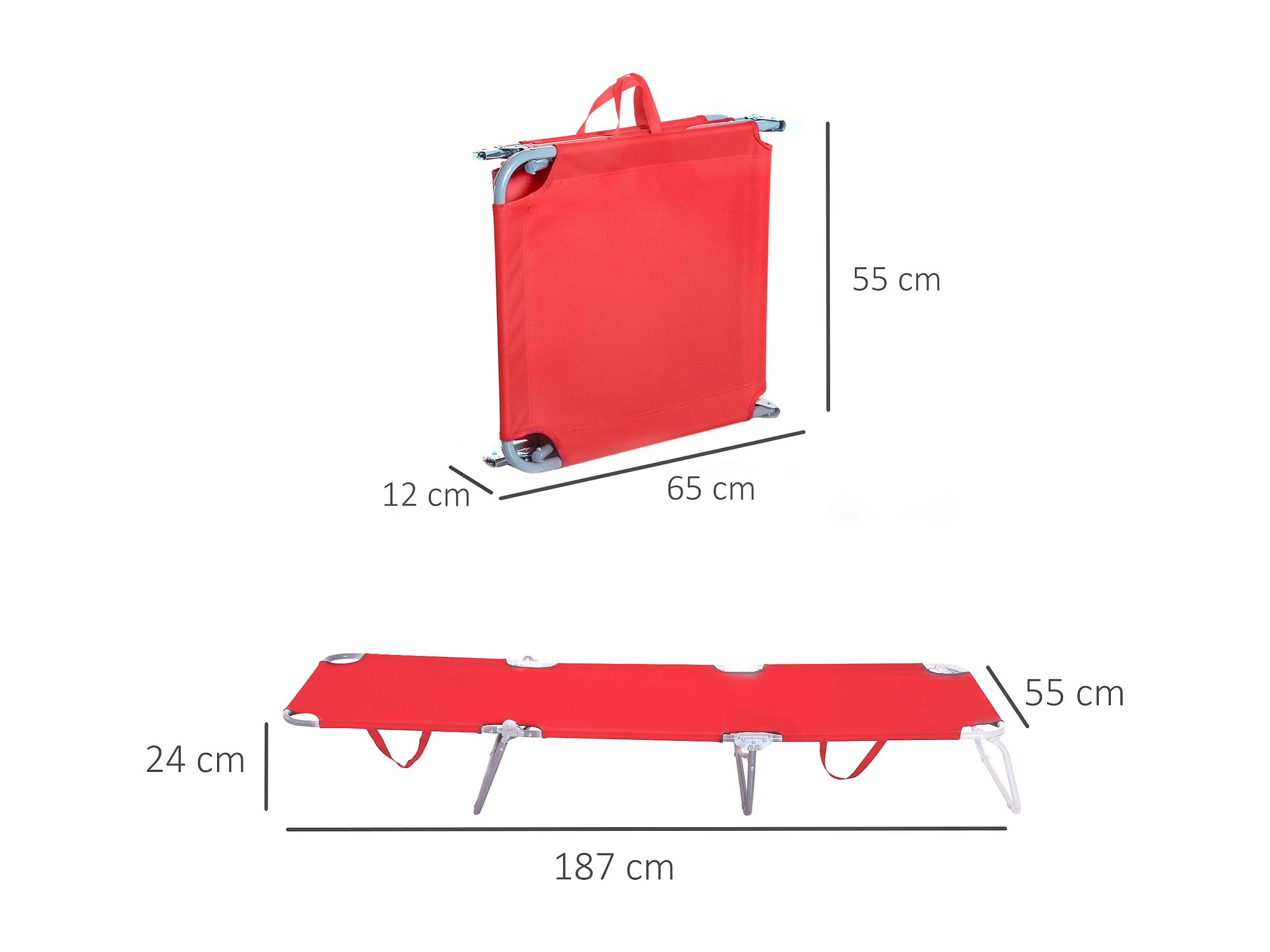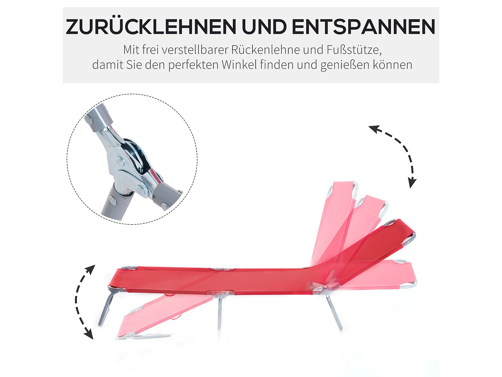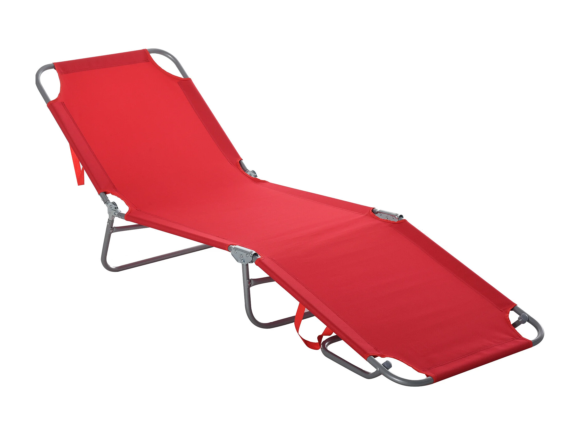 Chaise longue pliable avec dossier réglable, en métal et polyester, rouge (187x55x24 cm)