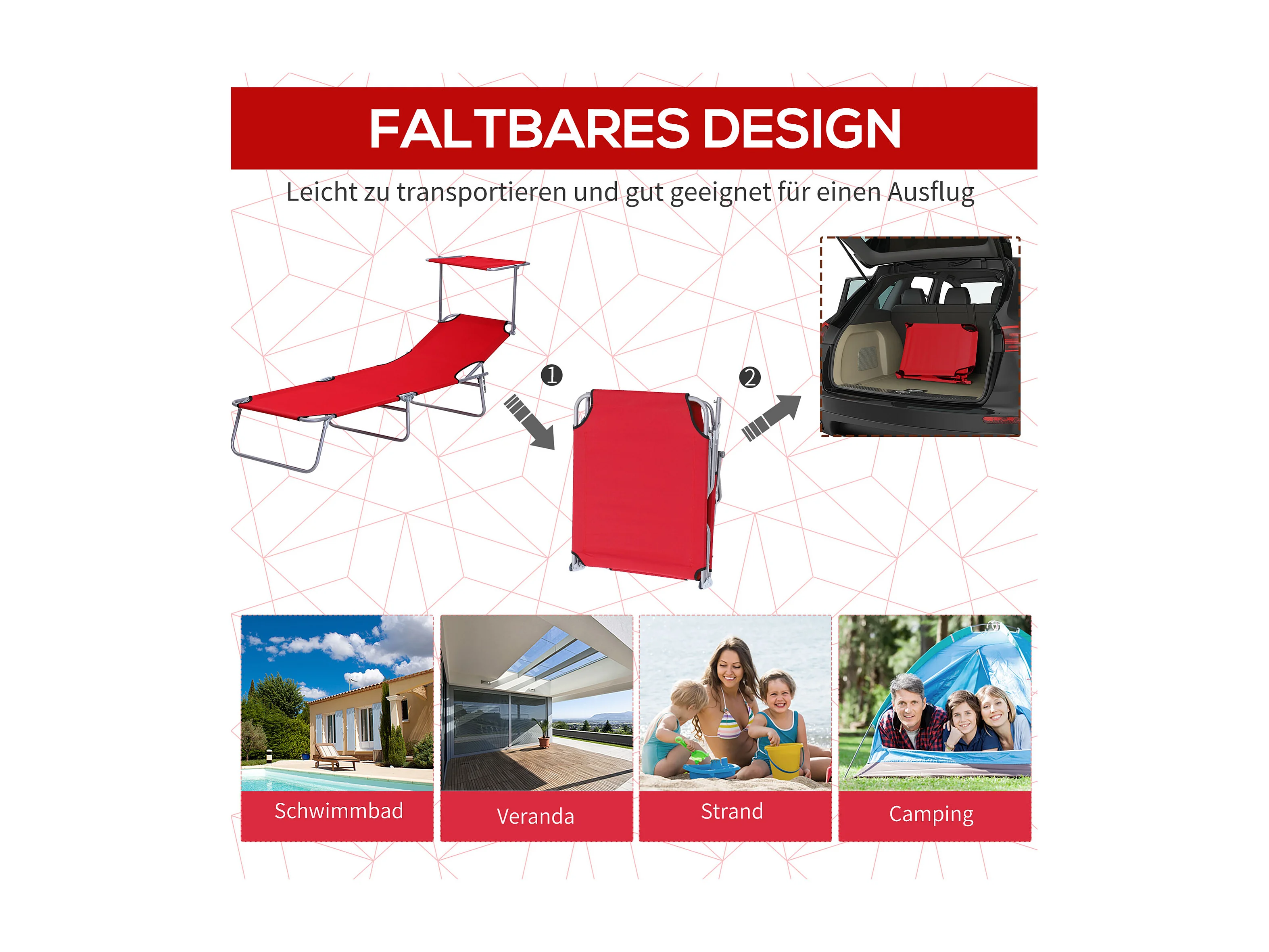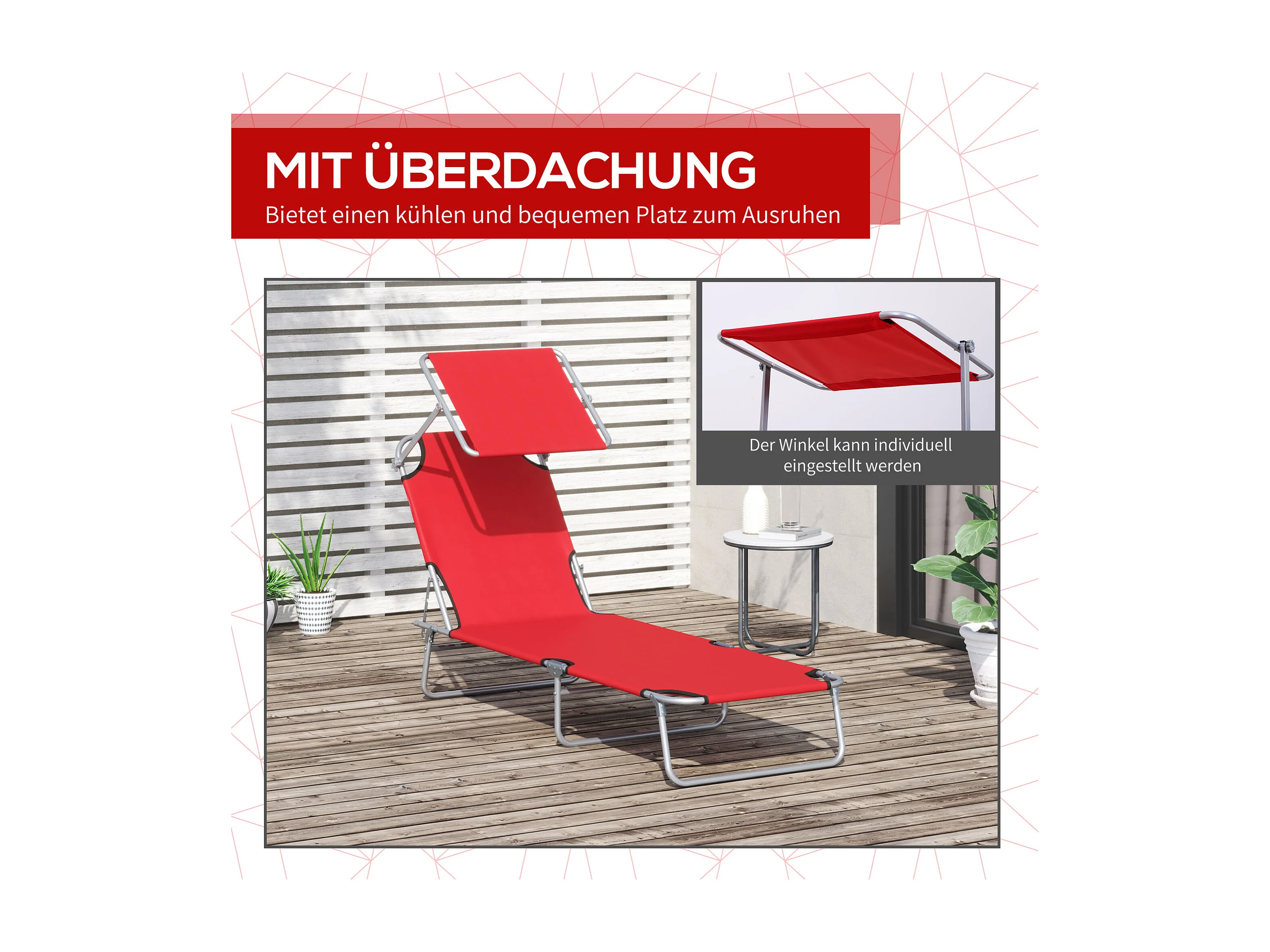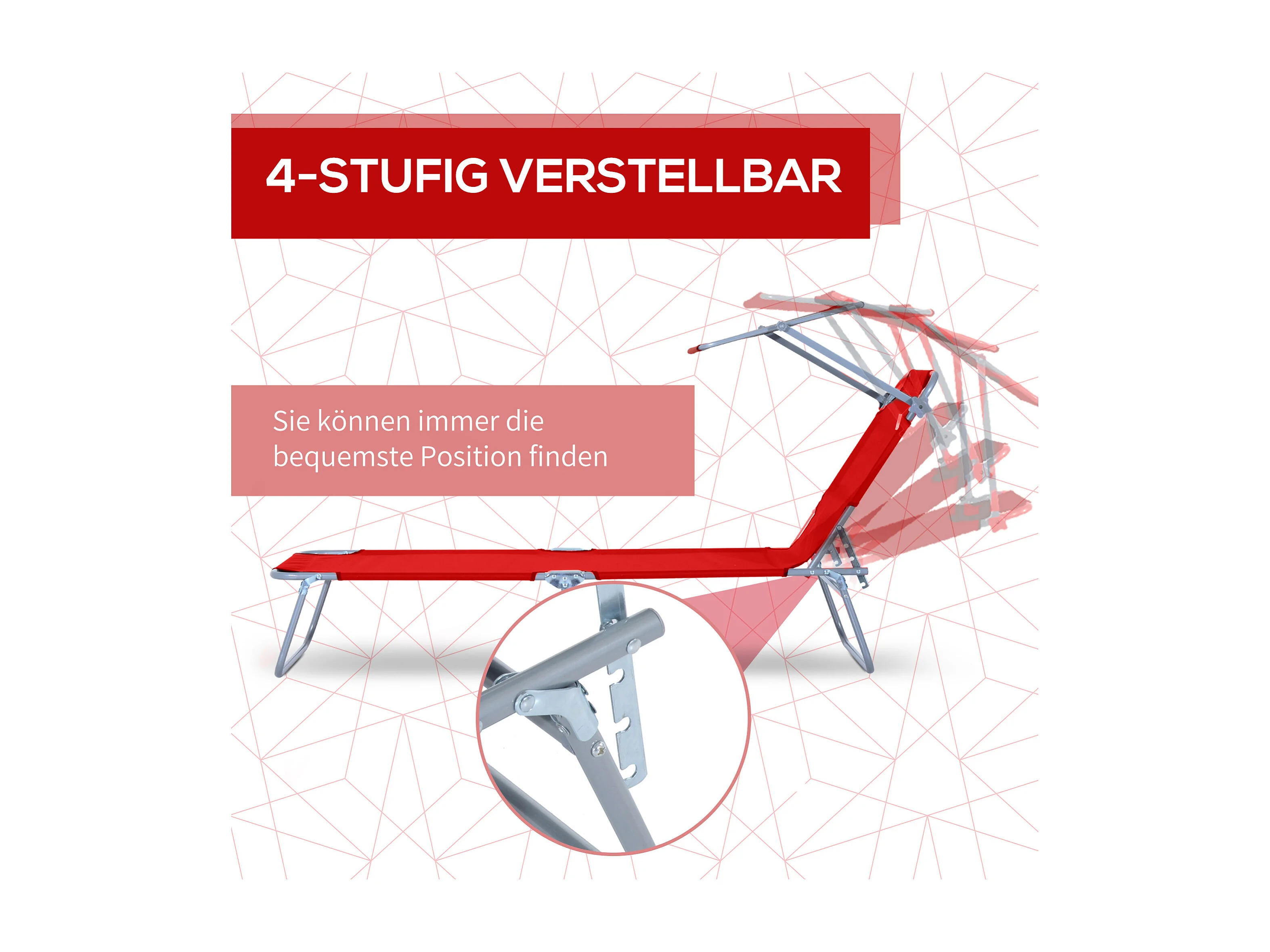 Chaise longue pliable avec toit pare-soleil, en métal et tissu Oxford, rouge (187x58x36 cm)