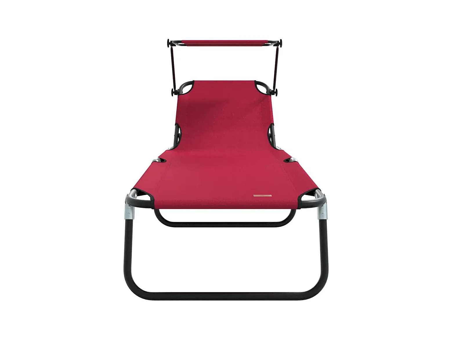 Chaise longue pliable avec un auvent rouge en tissu Oxford 600D