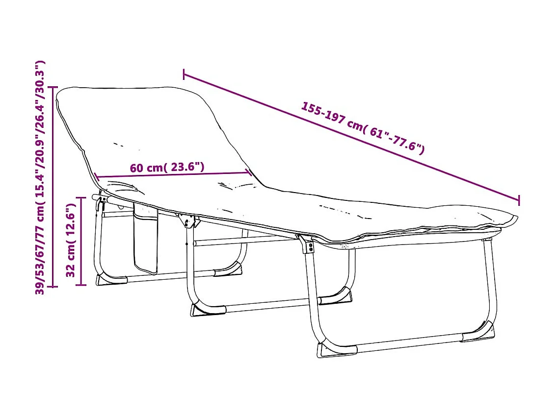 Chaise longue pliable vert foncé tissu