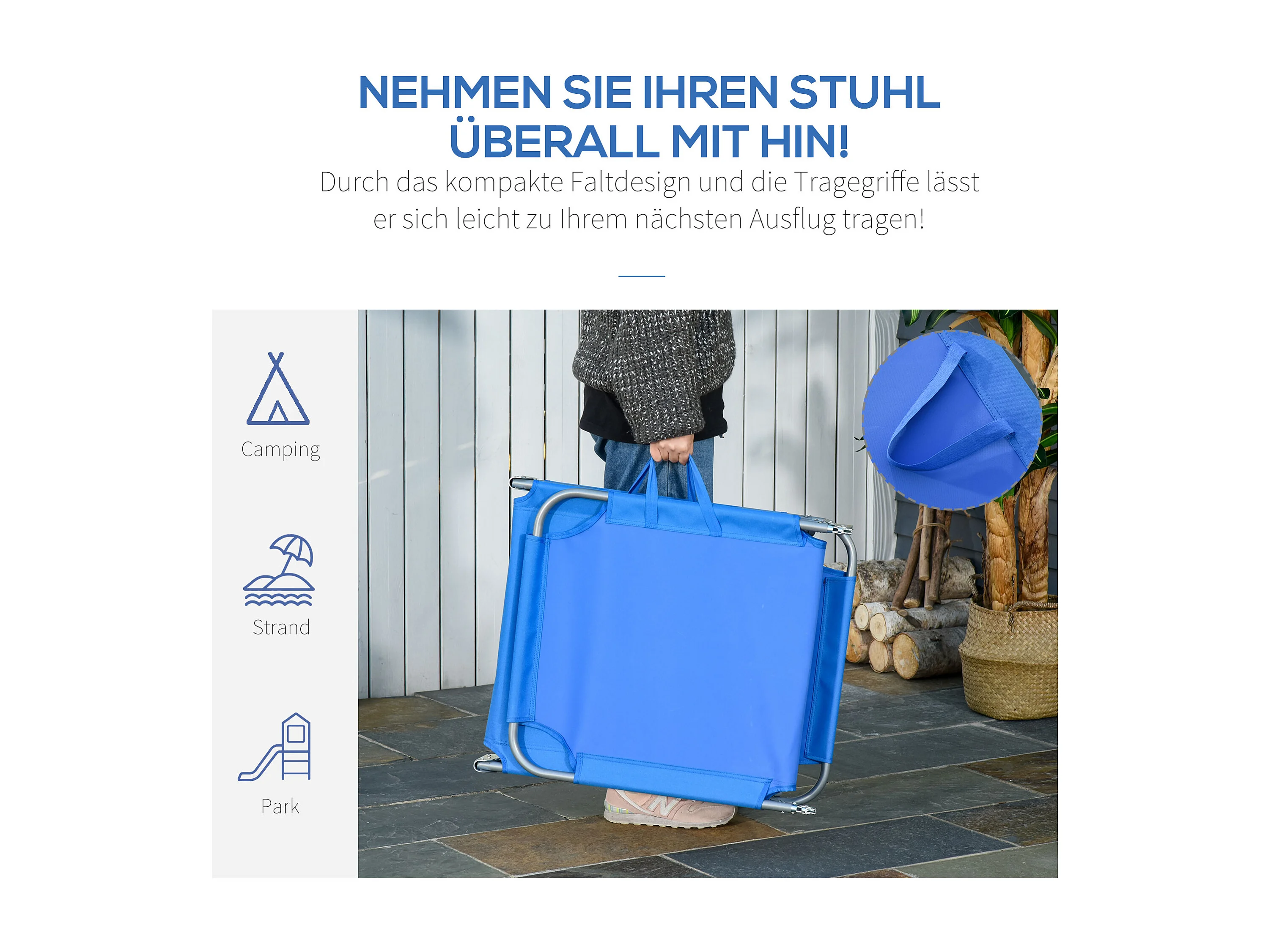 Chaise longue pliante avec dossier réglable, polyester Oxford, bleu (187x55x24cm)