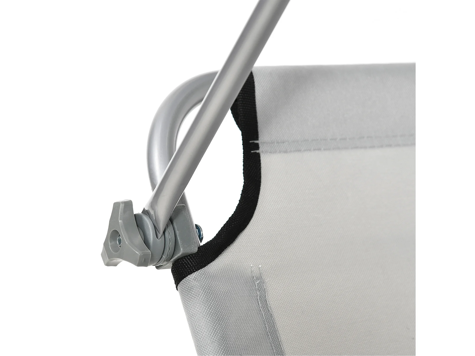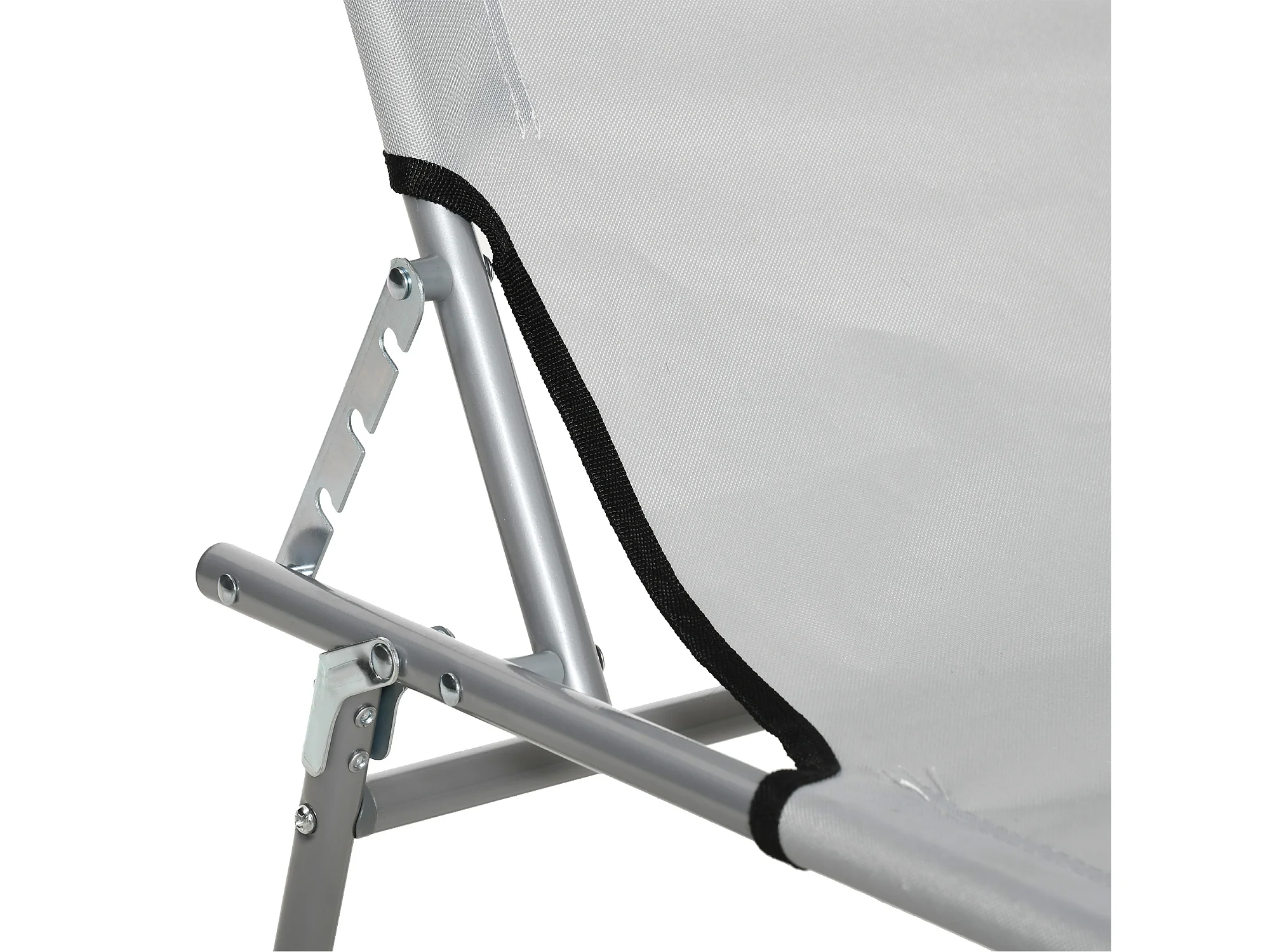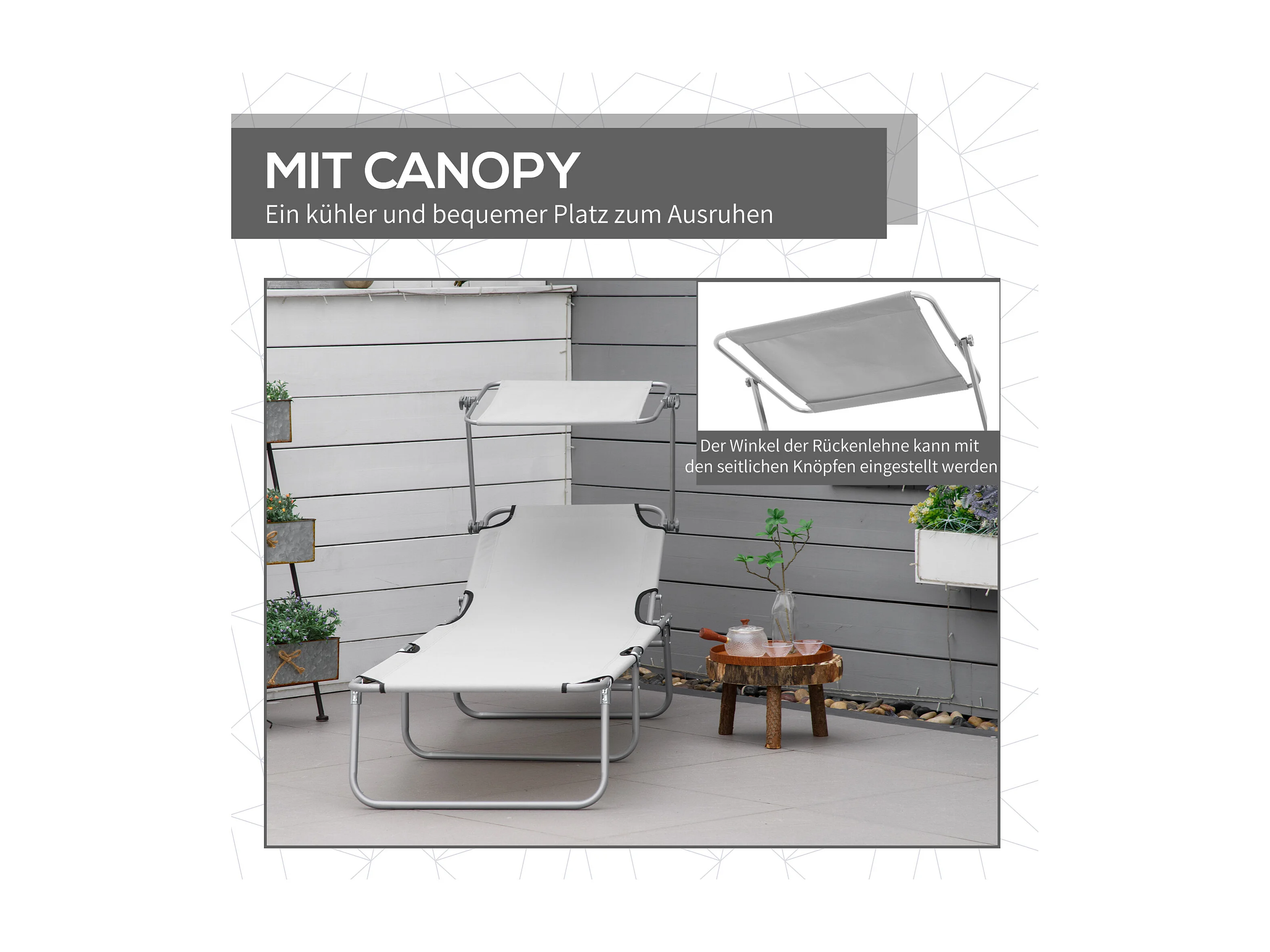 Chaise longue pliante avec toit, métal, gris clair, dossier réglable en 4 positions (187x58x36 cm)