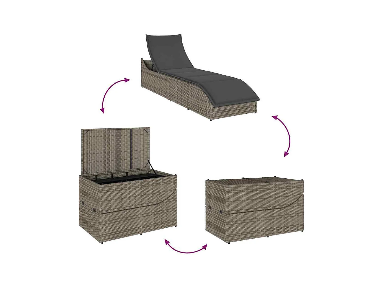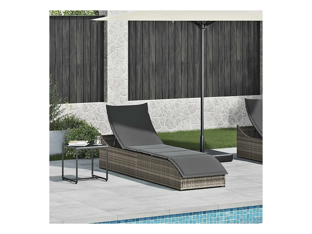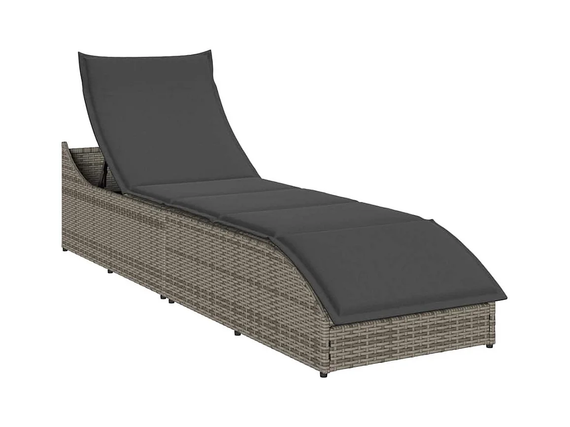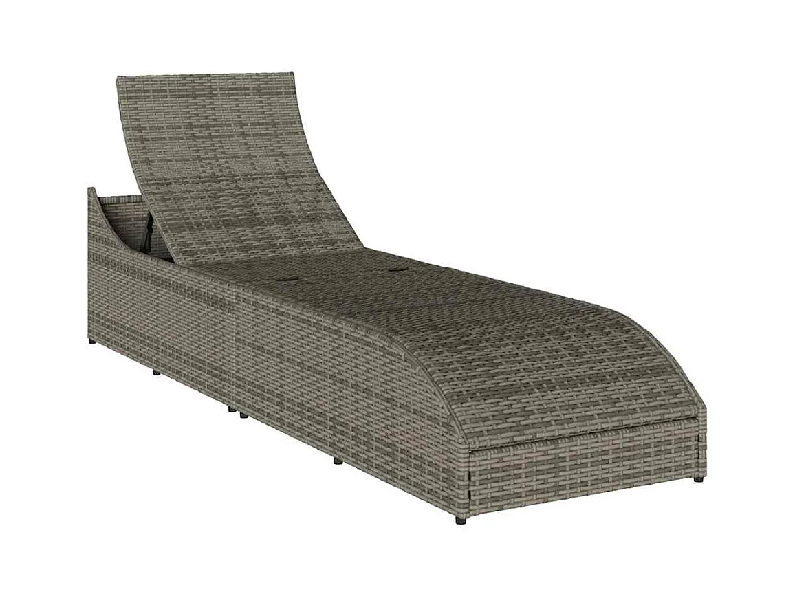 Chaise longue pliante coussin et rangement gris résine tressée