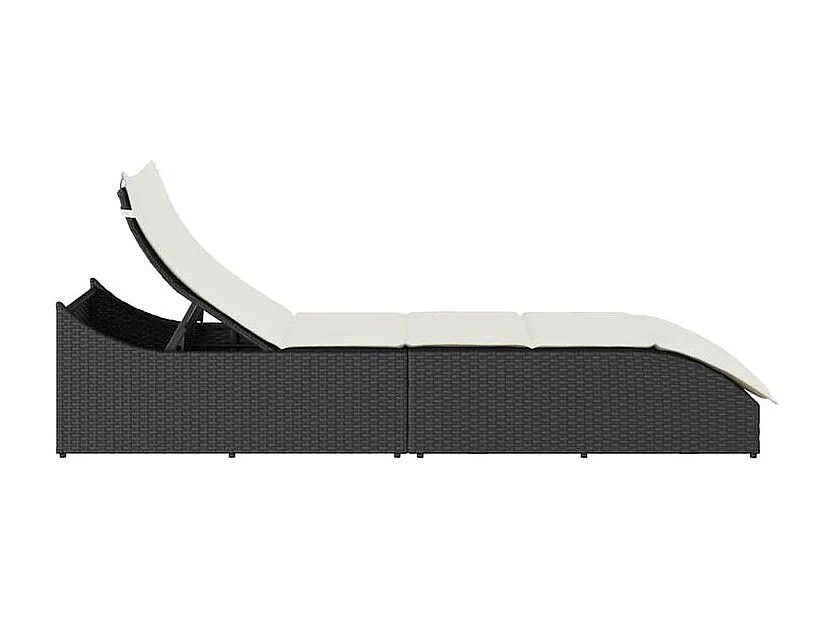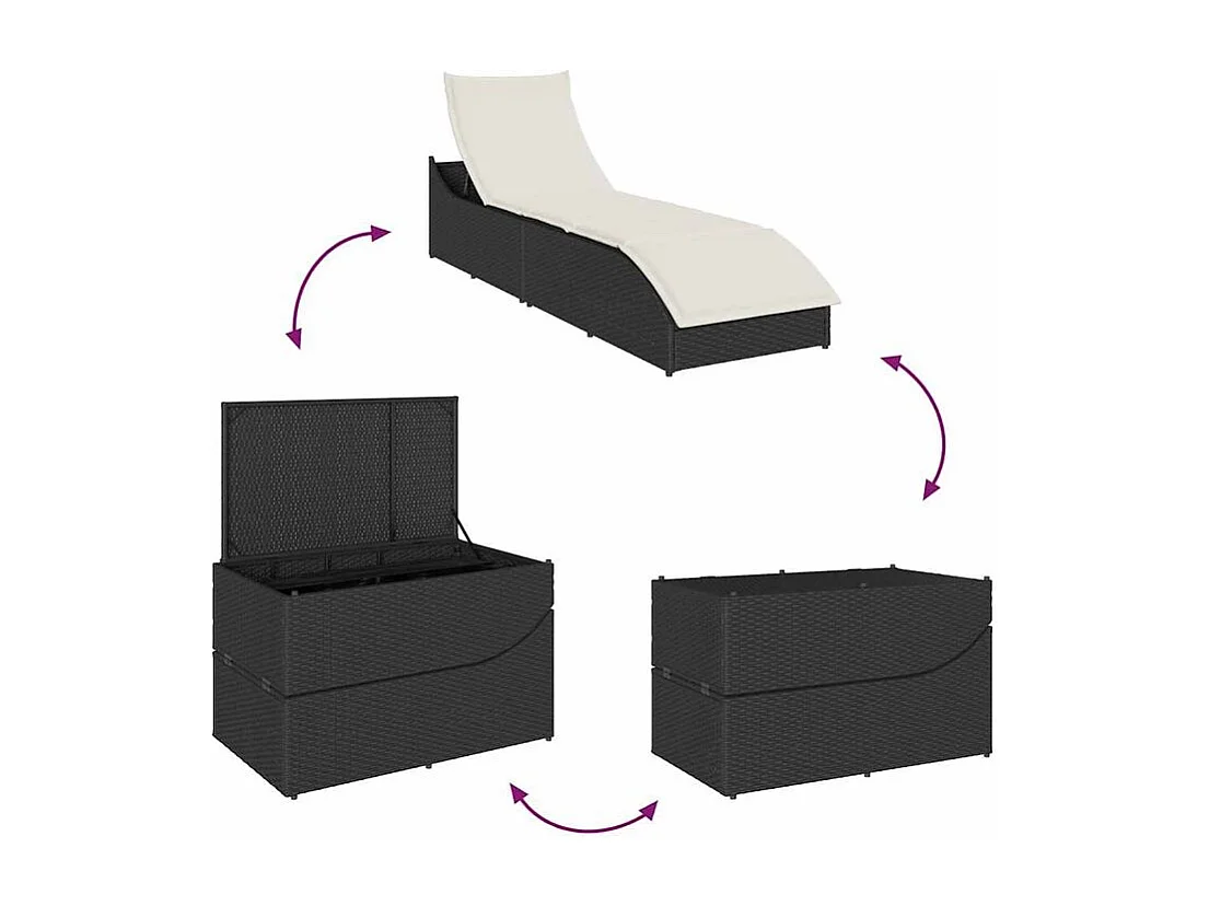 Chaise longue pliante coussin et rangement noir résine tressée