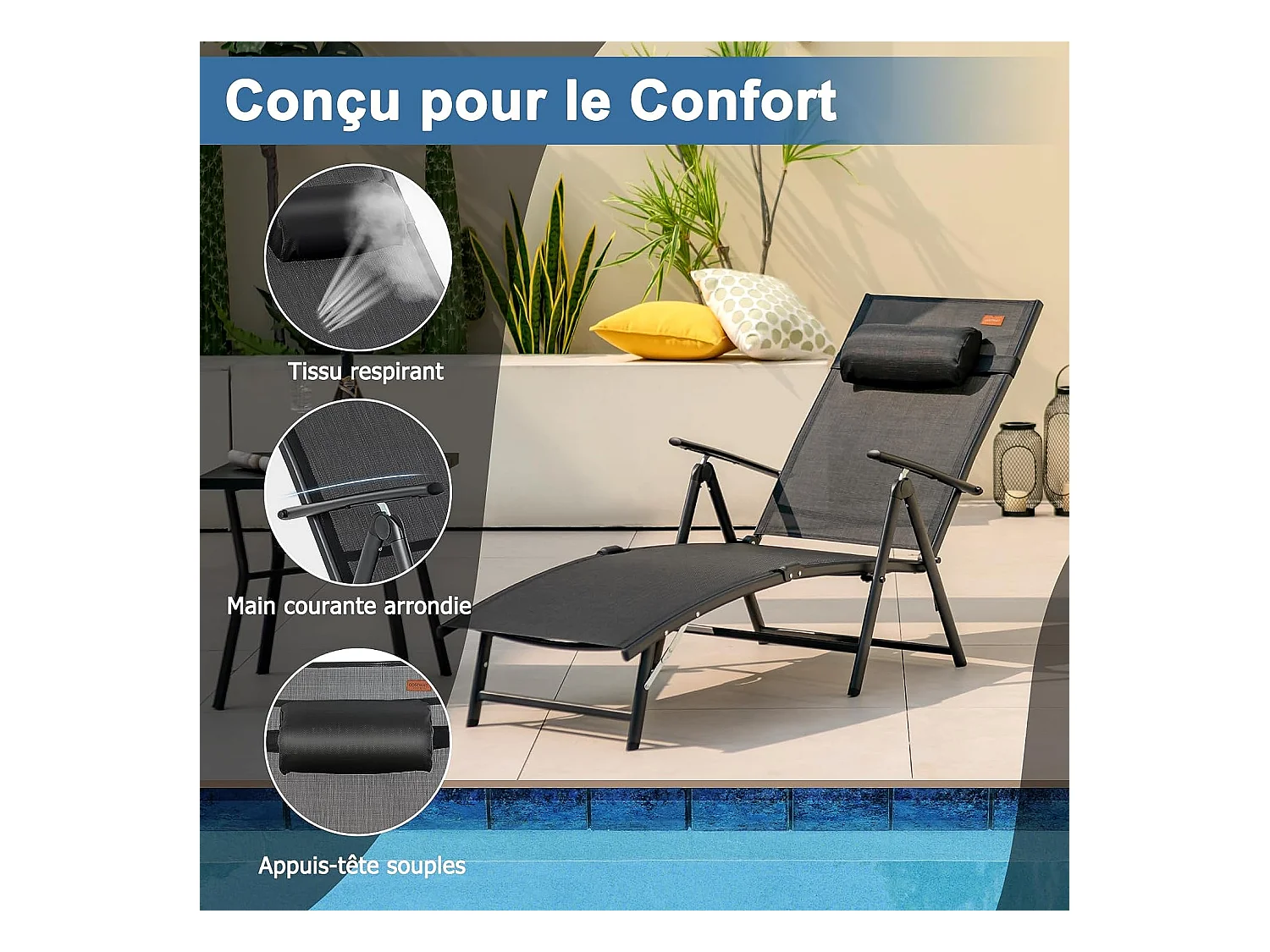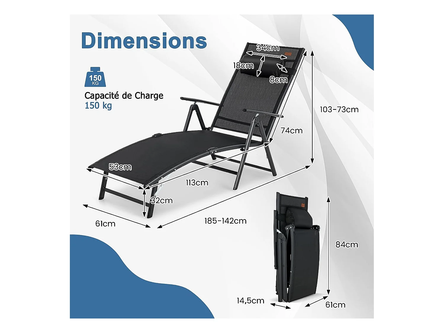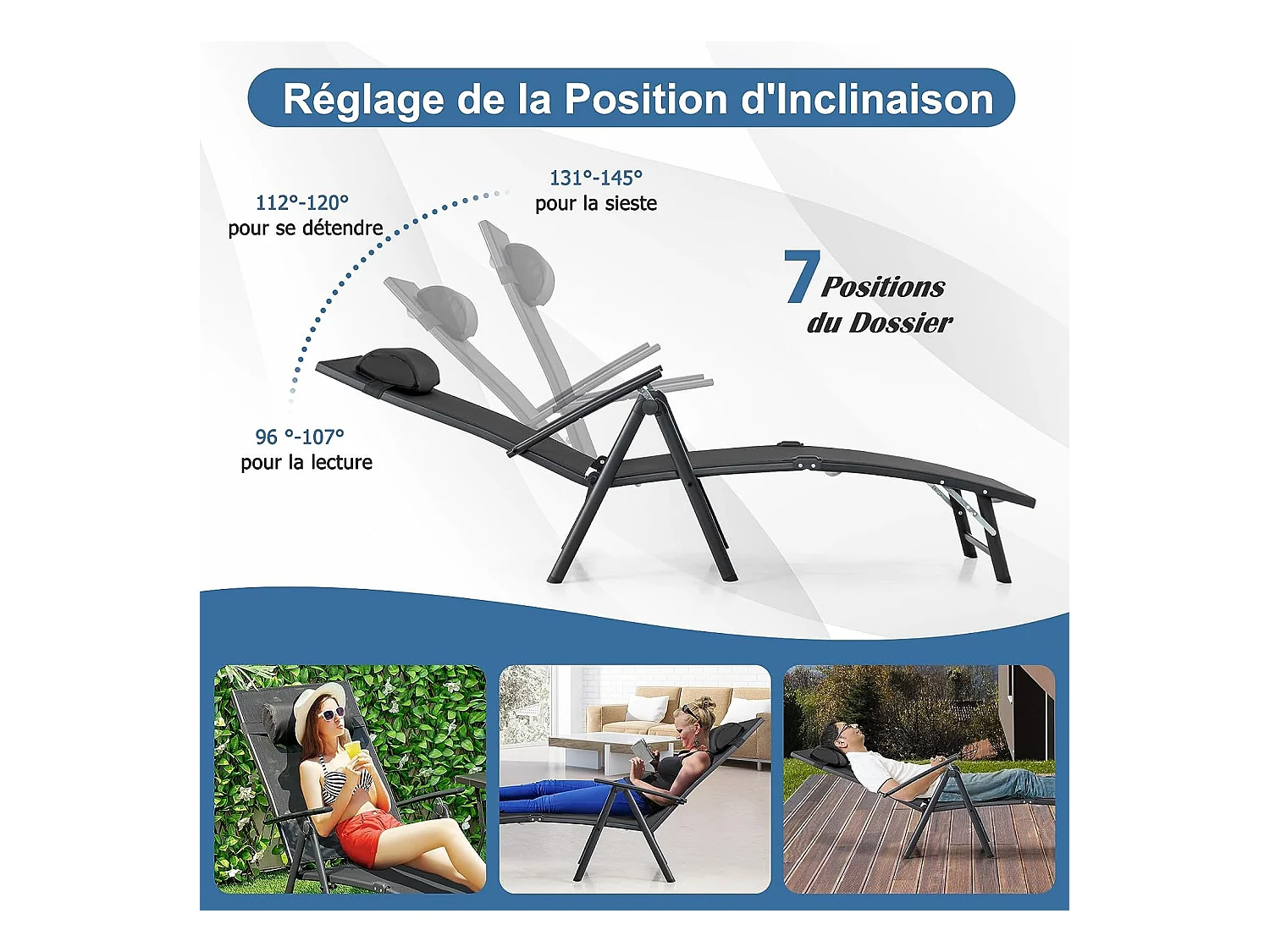 Chaise Longue Pliante, Transat Inclinable Portable (Noir)