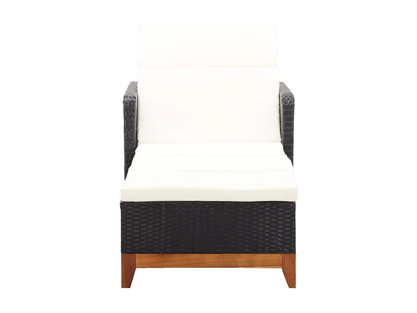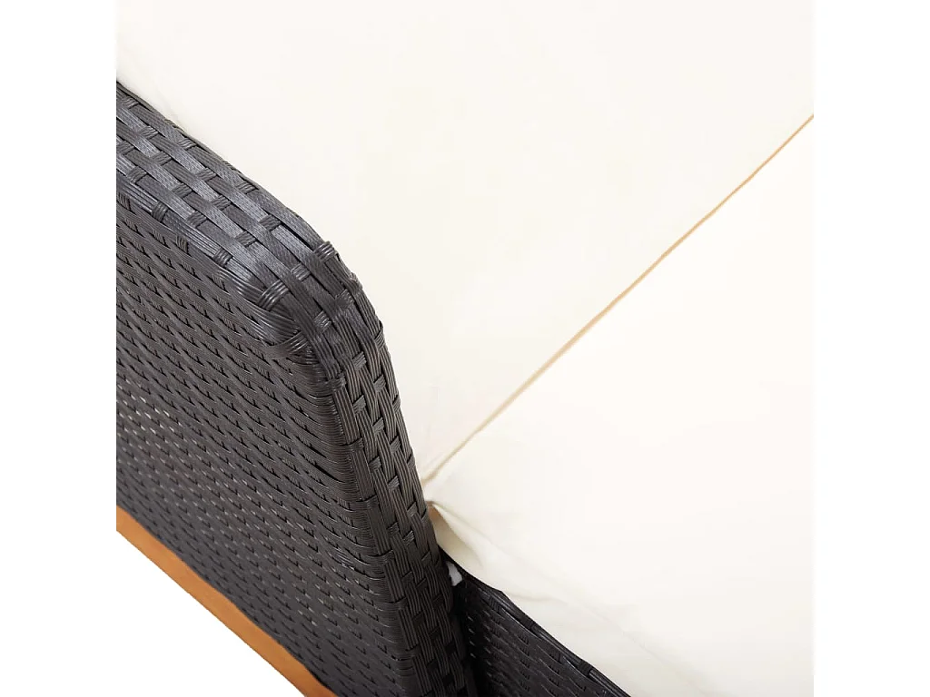 Chaise longue Résine tressée et bois d'acacia massif Noir 2