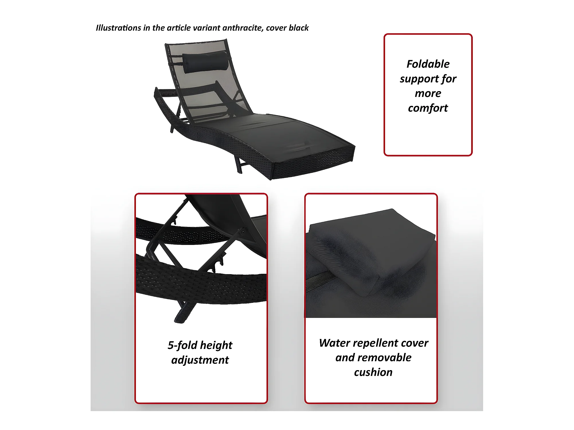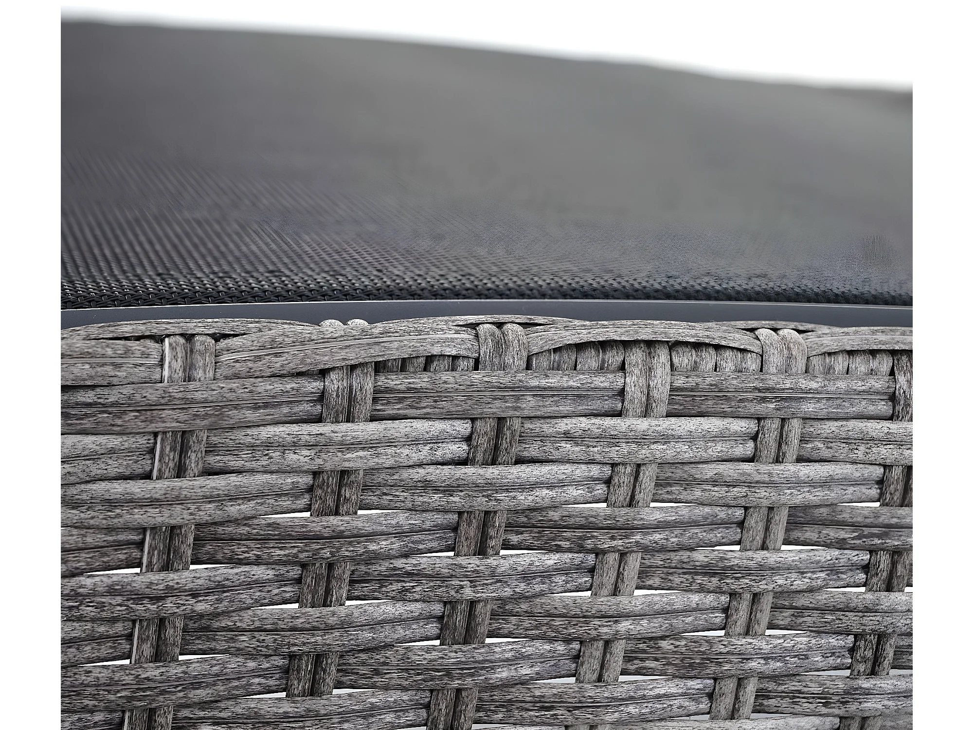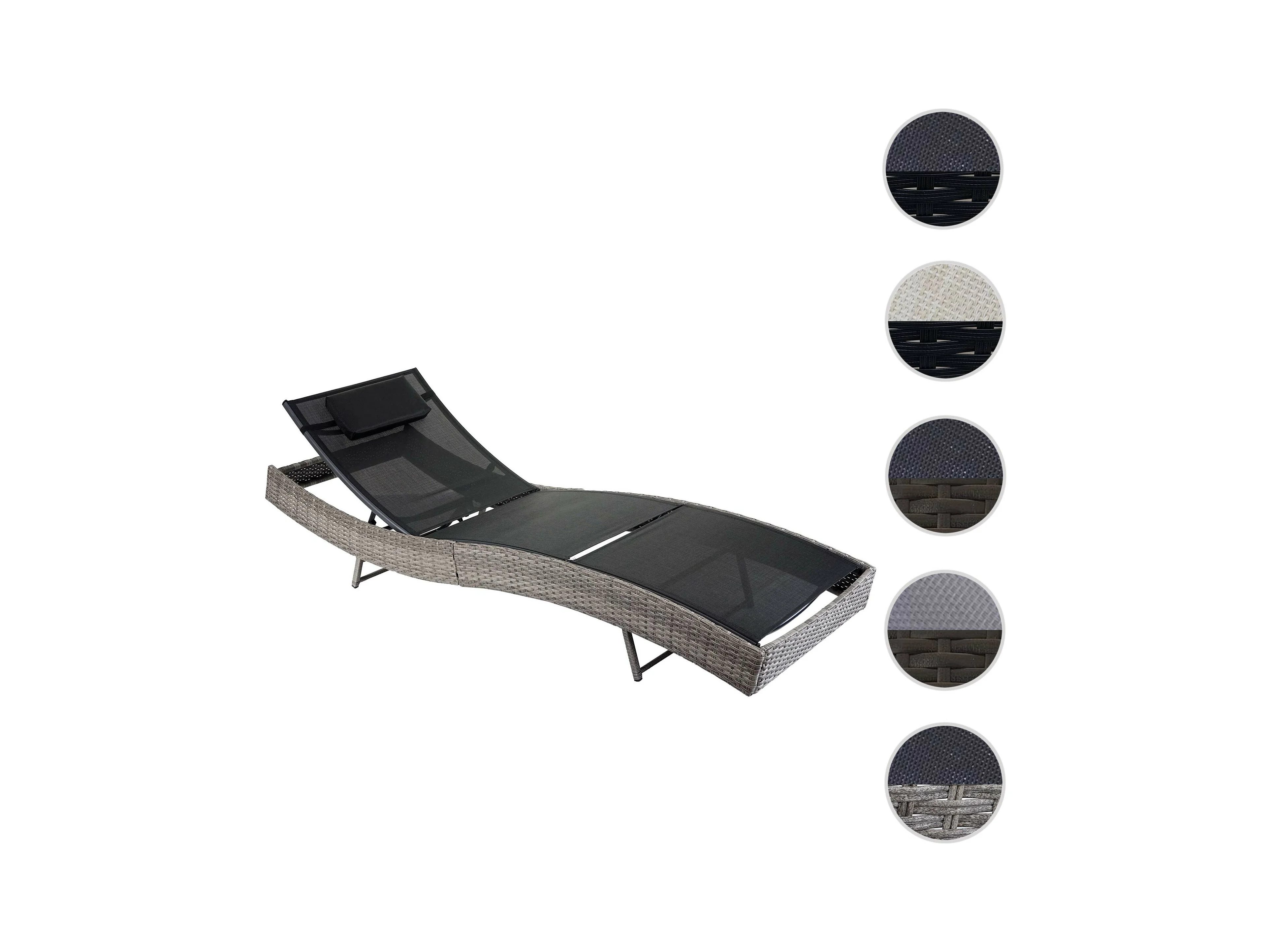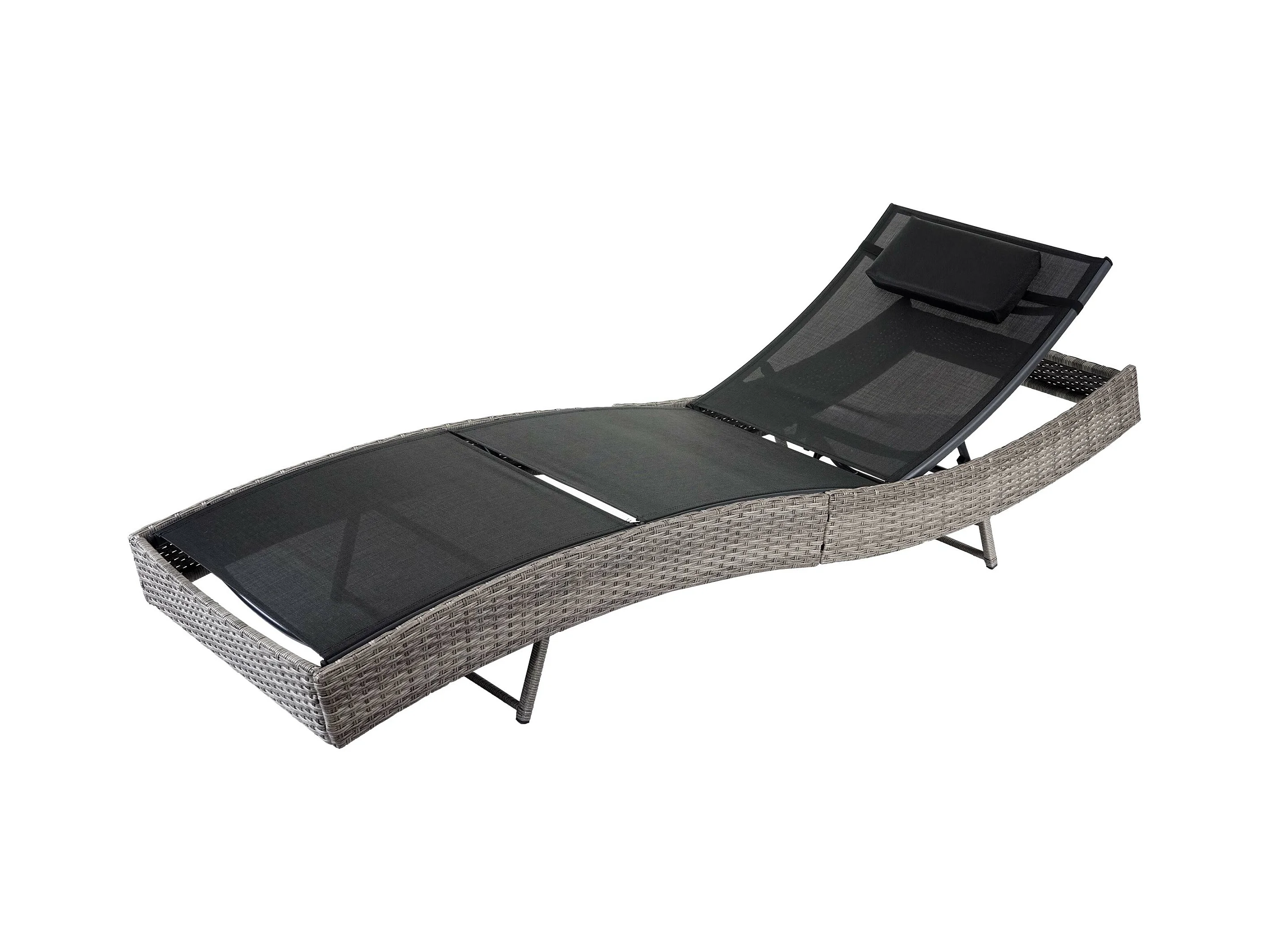 Chaise longue Savannah en polyrotin, transat de jardin - gris, textilene noir